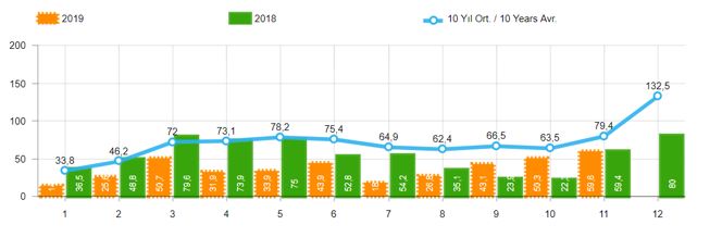 10 Yıllık ortalama ve 2019/2018 Toplam satışlar