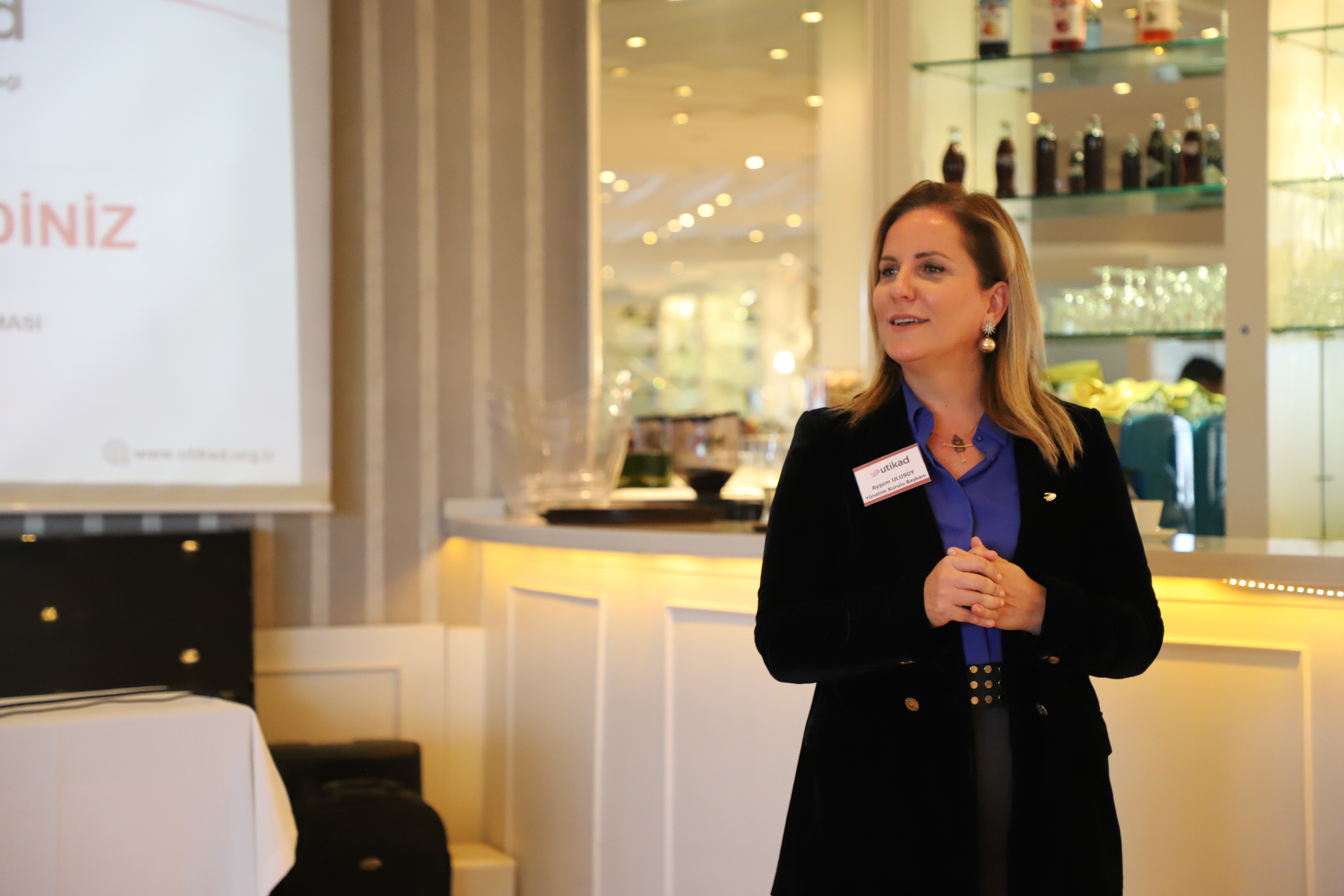 İzmir Fransız Kültür Merkezi Küçük Kulüp'te gerçekleşen üye buluşmasının açılış konuşmasını yapan UTİKAD Yönetim Kurulu Başkanı Ayşem Ulusoy, “Uzun yıllardır çatısı altında görev aldığım ve manevi olarak da kuvvetli bağlarla bağlı olduğum UTİKAD’ın ikinci kadın başkanı olmaktan büyük gurur duyuyorum. Aynı şekilde seçimlerde benimle birlikte bu yola çıkan arkadaşlarım da Türk lojistik sektörü için UTİKAD çatısı altında görev almaktan onur ve heyecan duyuyorlar” diye konuştu.