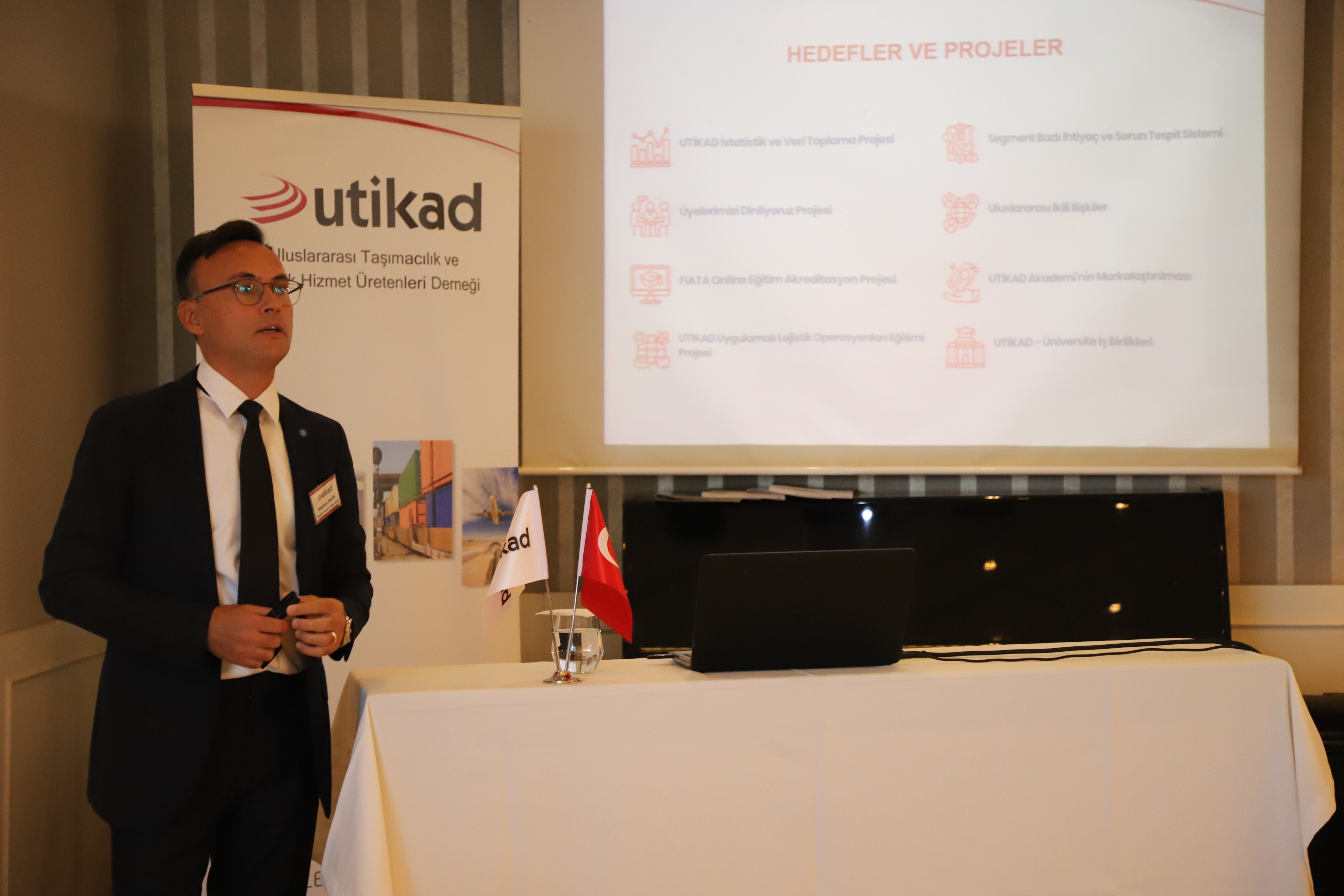 Alperen Güler’in ardından kürsüye çıkan UTİKAD Yönetim Kurulu Yedek Üyesi ve Bölgeler Koordinatörü Bilgehan Engin ise yeni yönetimin önümüzdeki dönemde hayata geçireceği projeleri üyeler ile paylaştı.