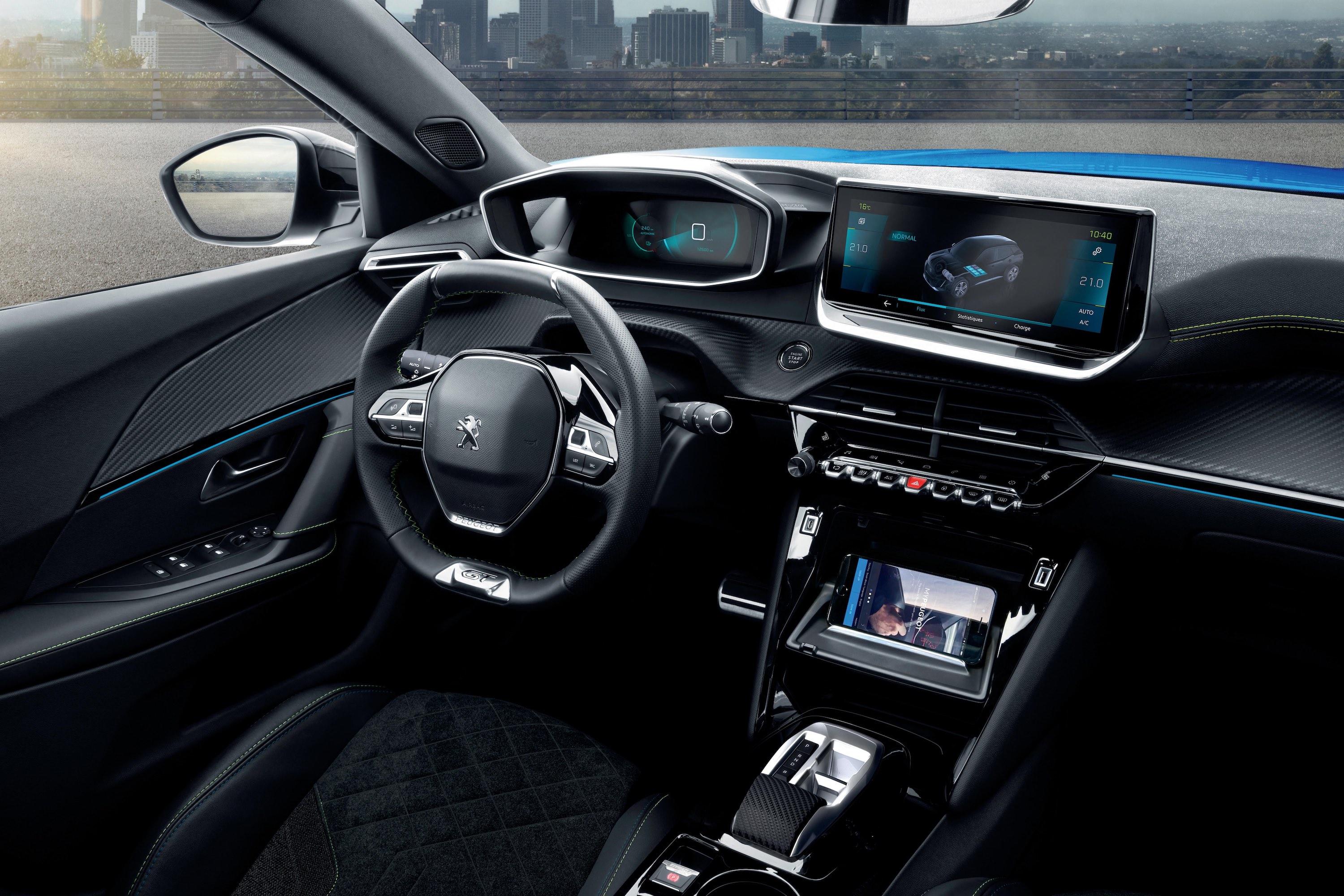 i-cockpit özellikli iç mekanda kompakt GT paket deri direksiyon, 3D dijital ön gösterge paneli, 10 inç kapasitif dokunmatik multimedya ekranı ve dikkat çekici e-toggle vites tasarımı sürdürülüyor. “Lime Yeşil” dikişler ve detaylarla elektrikli e-2008, çerçevesiz ve elektrokrom dikiz aynasına ek olarak Mistral alcantara koltuk döşemeleriyle de lüks ve konforlu bir atmosfer sunuyor. Ayrıca 8 farklı renkte ambiyans aydınlatması ayarlanabiliyor.