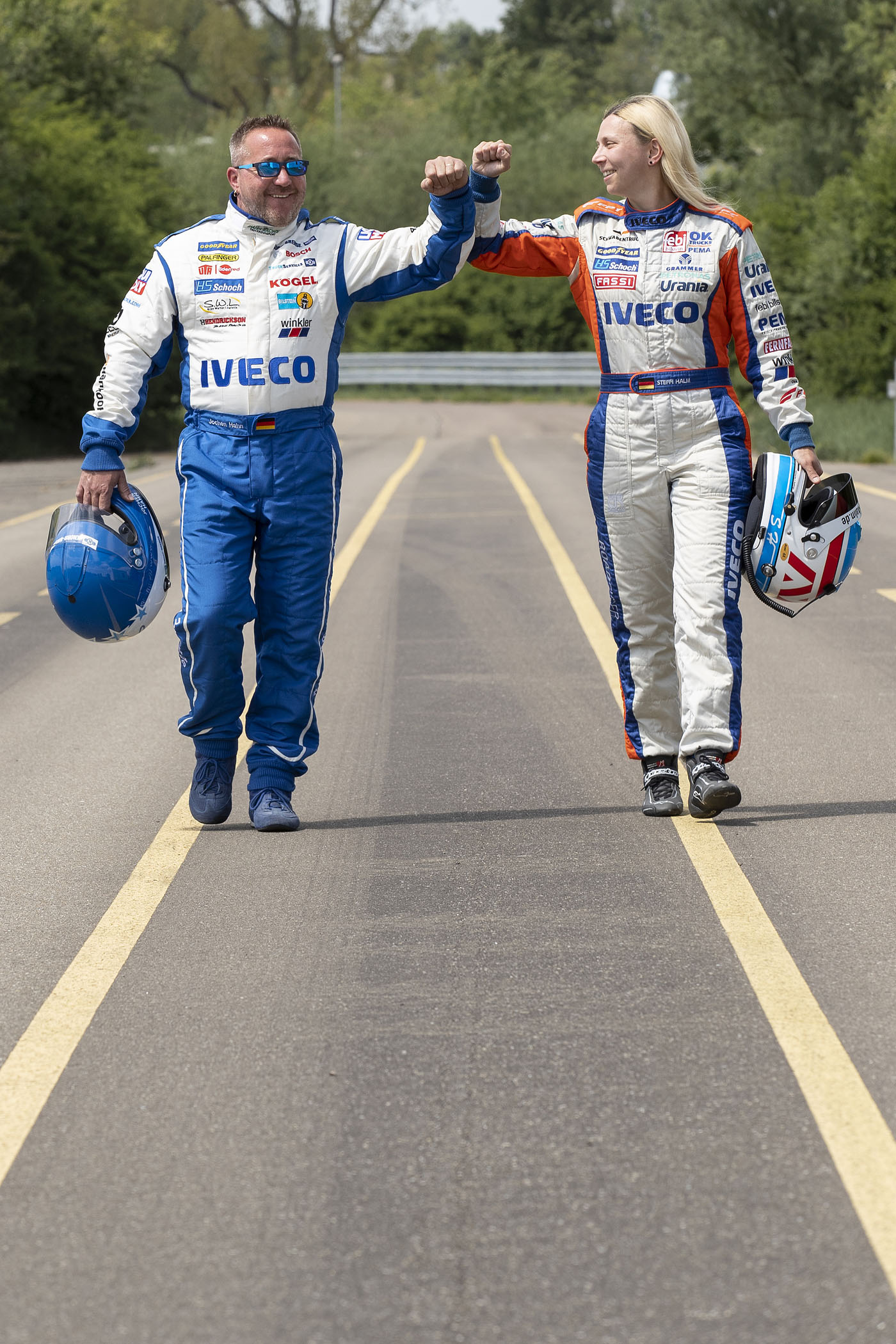 Schwabentruck takımının sürücüsü Steffi Halm, “Renklere gelince benim kamyonum Jochen’inkinden çok daha iyi görünüyor” dedi. “Ancak bu sezon pek fark etmeyecek, zira yalnız arkasını görecekler!”