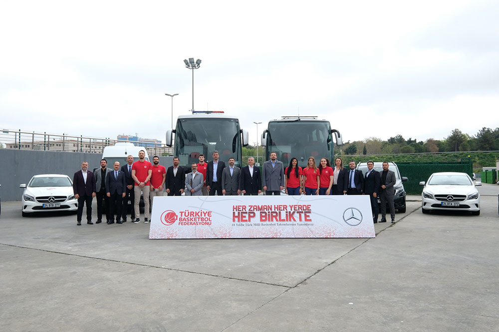 Mercedes-Benz Türk’ün de desteği ile Türkiye’yi başarıyla temsil eden milli basketbol takımlarının güvenli ve konforlu bir şekilde seyahat etmeleri için, Türkiye Basketbol Federasyonu’nun kullanımına 2 adet Travego milli takım otobüsü, 2 adet S-Serisi, 2 adet E-Serisi, 13 adet C-Serisi, 13 adet B-Serisi, 3 adet Vito ve 1 adet Sprinter olmak üzere toplamda 36 araç tahsis ediliyor.
