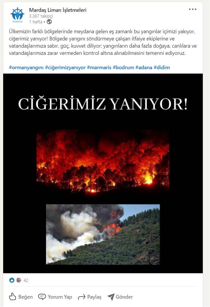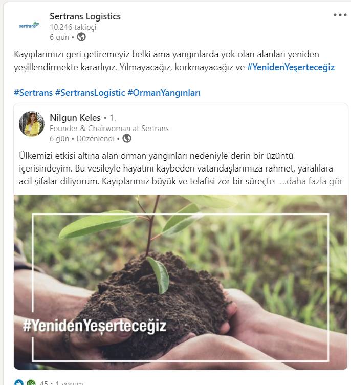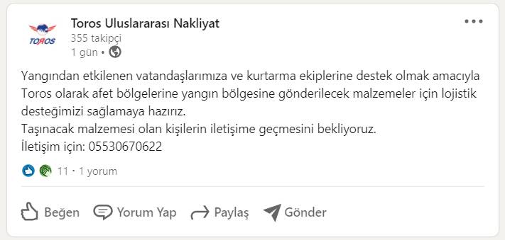 Lojistik Sektörü Yangınlara tüm Gücüyle destek veriyor