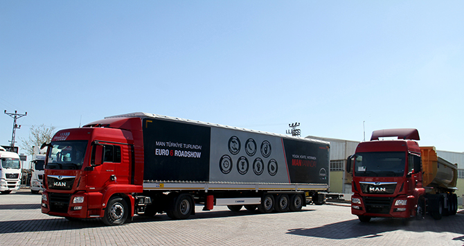 Türkiye’nin tüm bölgelerinde yer alan 14 ili ve 16 merkezi kapsayan MAN Roadshow’da, 2017 model TGS 18.420 4X2 BLS-TS (Özünlü damper dorse), TGS 18.420 4X2 BLS (Krone tenteli treyler), TGX 18.460 4X2 BLS (Krone tenteli treyler), TGS 41.360 8X4 BB Mikser (İmer mikser), TGS 41.500 8X4 BB Damper (Özünlü damper) ve TGL 12.180 araçlar tanıtıldı. Saat 12.00’de başlayan ve akşam saatlerine kadar süren Roadshow, yapılan teknik sunumlar, araç başında bilgilendirmeler ve test sürüşleri ile adeta MAN’ın teknoloji şölenine dönüştü.