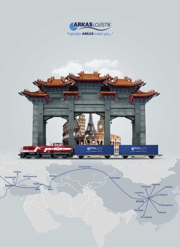 Arkas Lojistik’in demir ipek yolu servisindeki hat Çin’in XI’AN kentinden başlıyor. Kapıdan kapıya taşıma yapılan bu serviste Arkas Lojistik XI’AN istasyonuna kadar ön taşımaları da gerçekleştiriyor. Hat, XI’AN’dan Kazakistan’a ulaşarak Hazar kıyısındaki Aktau Limanı’na varıyor. Buradan Bakü, Tiflis ve Kars güzergahıyla Türkiye’ye ulaşıyor. Kars üzerinden İzmit’e bağlanıyor ve Marmaray’ı takiben Avrupa’ya uzanıyor.