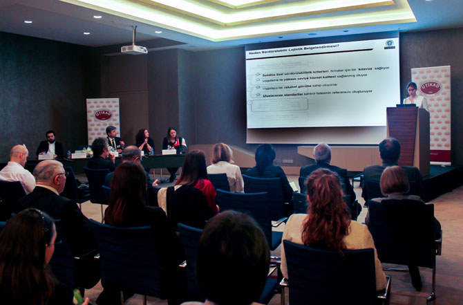 UTİKAD Yönetim Kurulu Başkanı Turgut Erkeskin’in moderatörlüğünü yaptığı seminere, BureauVeritas Belgelendirme Departman Müdürü Seçkin Demiralp, BureauVeritas İş Geliştirme Müdürü Burcu Mutman Boran, Ekol Lojistik Yönetim Sistemleri Geliştirme Yöneticisi Enise Ademoğlu ve Solibra Lojistik Yönetim Kurulu Üyesi Bahadır Bozok konuşmacı olarak katıldı. UTİKAD Genel Müdürü Cavit Uğur’un da katıldığı seminere UTİKAD üyesi firmaların ve davetlilerin ilgisi yoğundu.