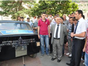 Artvin Çoruh Üniversitesi Meslek Yüksekokulu Elektrik Programı Öğretim Görevlisi Bilgehan Tozlu ve öğrencileri İnci Akü’nün desteğiyle ve otomotiv sanayi esnafıyla işbirliği içinde elektrikle çalışan otomobil yaptı.
