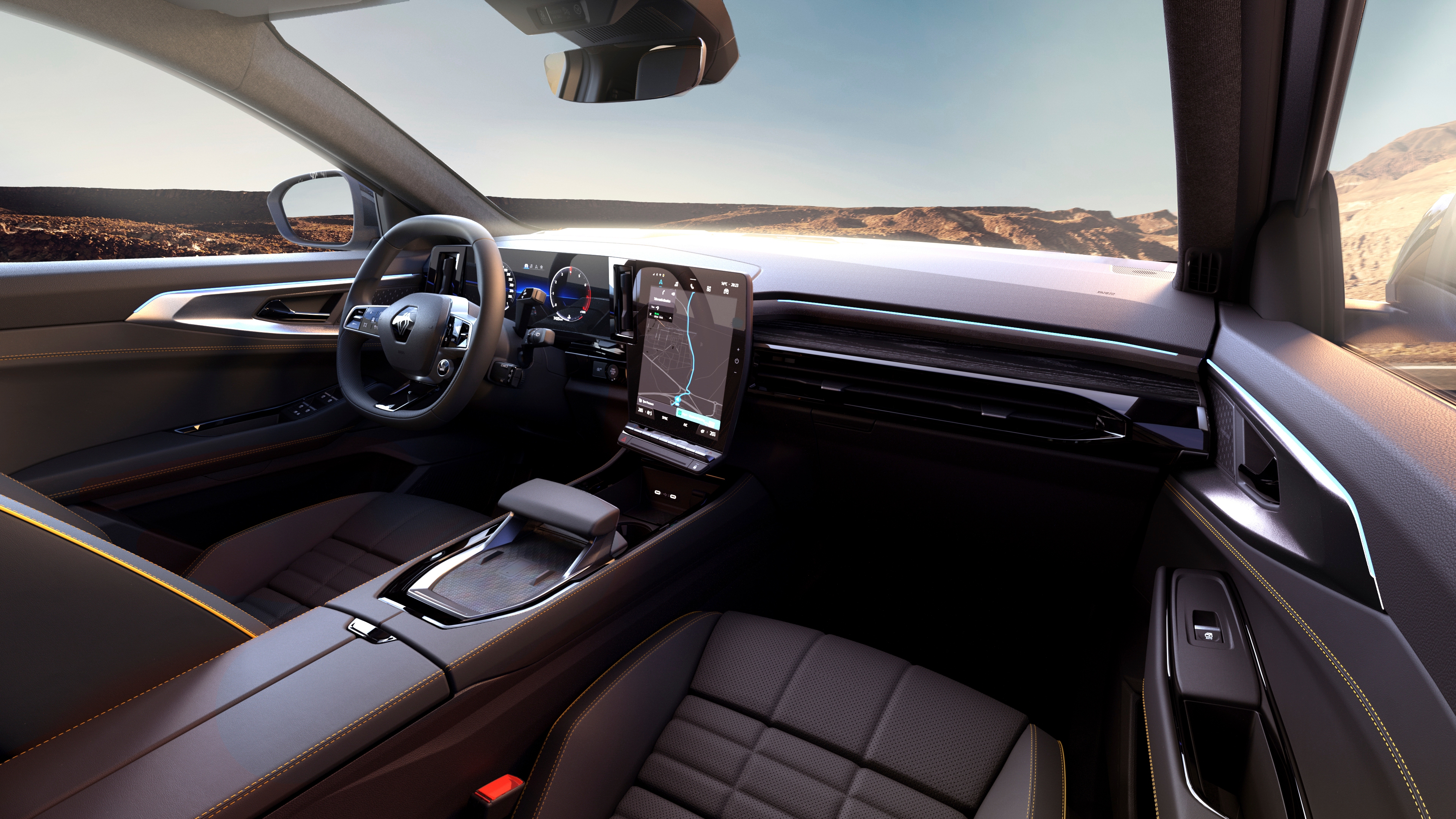 Donanım seviyesine ve seçilen opsiyonlara bağlı olarak, yeni Austral’ın iç mekânı, gerçek ahşap, deri, Alcantara, dolgulu kumaşlar ve dokunma hissi uyandıran malzemeler içeriyor. Kabin içini Derin Parlak Siyah ve Saten Krom detaylar tamamlıyor. Kaliteli malzemeler otomobilin iç mekanındaki kalite algısını ve sıcaklığı arttırıyor. İç ambiyansı “MULTISENSE” olarak bilinen kişiselleştirilebilir ortam aydınlatması tamamlıyor.