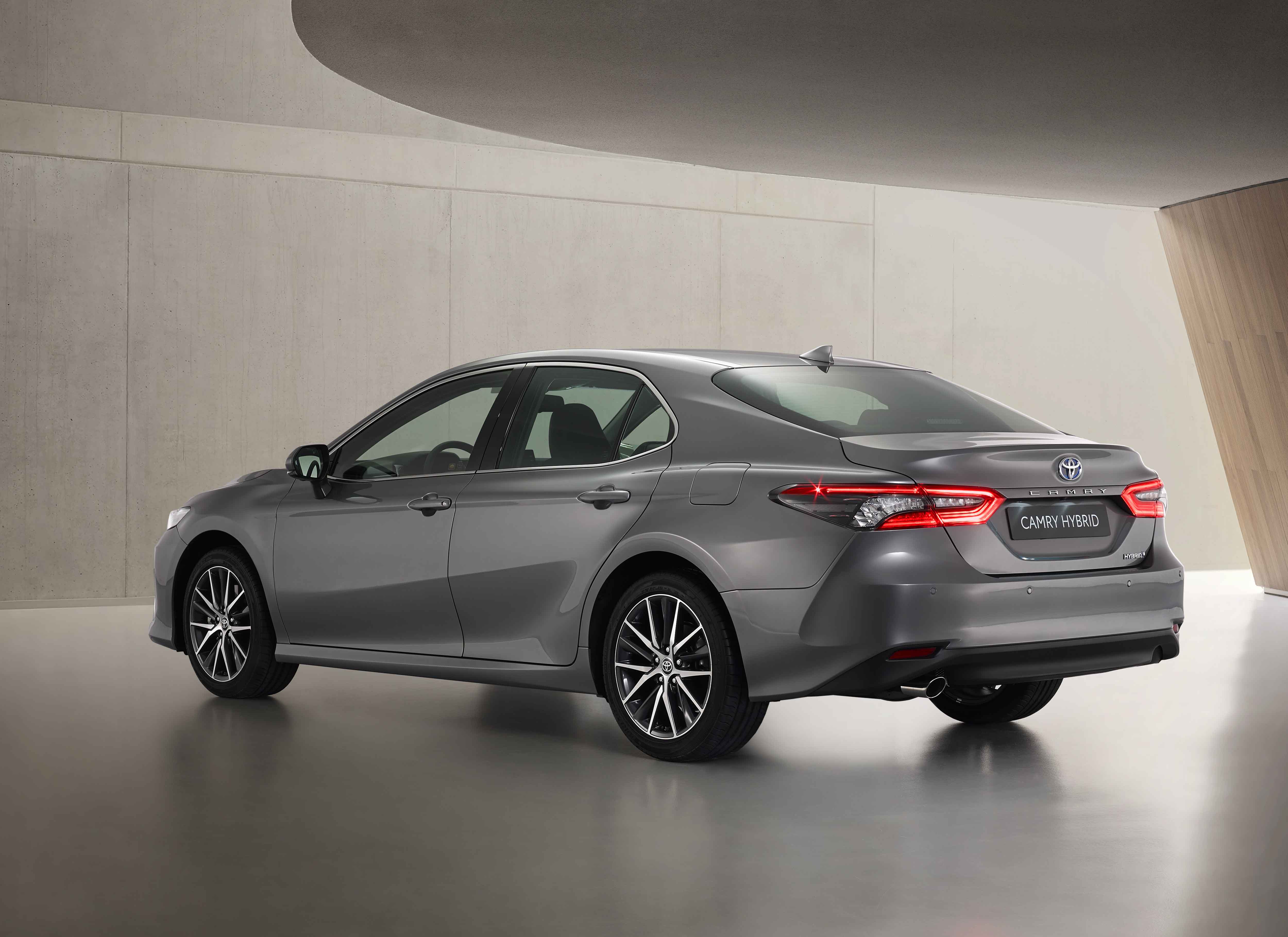 Yeni tasarlanan çift renk 18 inç jantlarla birlikte aracın sportif hissi daha fazla vurgulandı. Ayrıca V şekilli detaylara sahip jantlardaki koyu renkli kollar, çevik ve dinamik duruşu destekliyor. Stop grubunda ise kapsamlı bir renk değişimiyle daha şık bir görünüm elde edildi. Yenilenen Camry Hybrid, Toyota ürün gamında ilk kez kullanılacak zarif Titanyum Gümüş-Gri ve metalik Egzotik Kırmızı renk seçenekleriyle de tercih edilebiliyor.