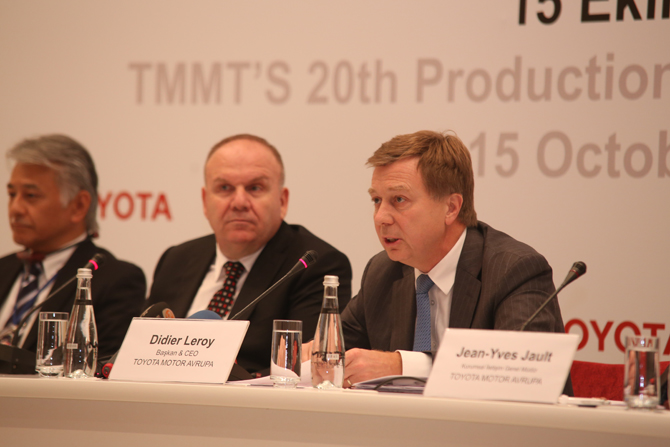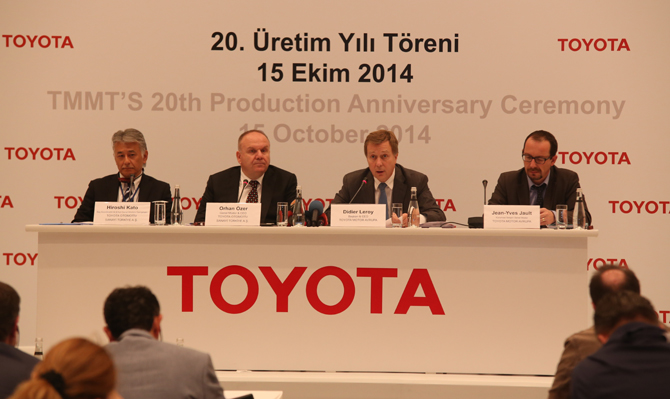 Toyota Otomotiv Sanayi Türkiye’nin Sakarya’daki üretim tesislerinde gerçekleştirilen 20.yıl kutlama töreninde konuşan Toyota Motor Avrupa Başkan ve CEO’su Didier Leroy, Toyota Otomotiv Sanayi Türkiye çalışanlarına şu mesajı verdi; “Türkiye’nin uzun vadeli ekonomik büyüme potansiyeline sahip olduğuna tamamen inanıyor ve buradaki Toyota çalışanlarının yeteneklerine güveniyorum. Bu tesisin yüksek rekabetçiliğine güvenerek, yakın bir gelecekte TMMT’nın üretimini arttırmasına yönelik karar alındı ve tam olarak bunun nasıl şekilleneceğine dair çalışmaları halen yürütüyoruz.”