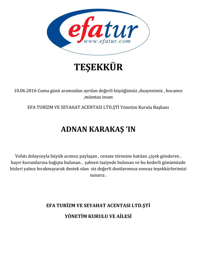 10.06.2016 Cuma günü trafik kazası sonucu hayatını kaybeden Efa Turizm Yönetim Kurulu Başkanı Adnan Karakış'ın toprağa verildi