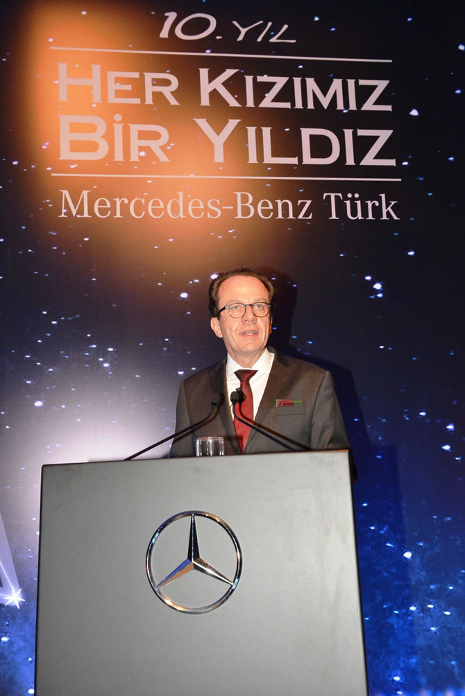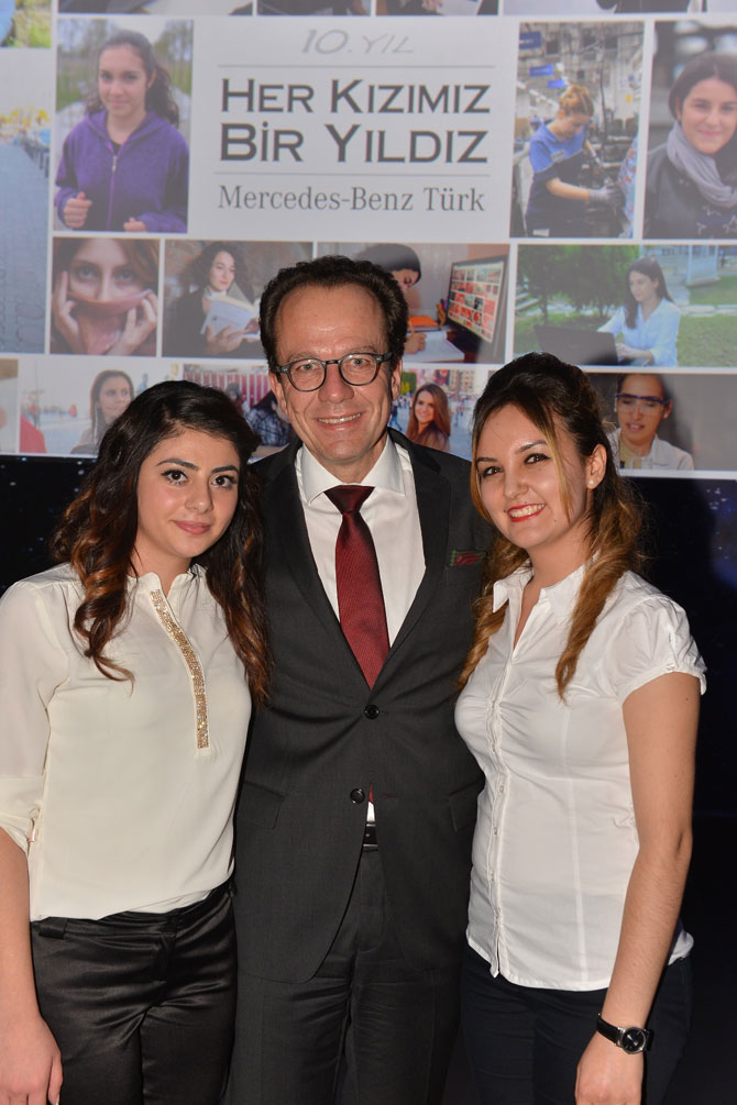 Projenin geldiği nokta ve hedeflerinin paylaşıldığı buluşmanın açılış konuşmasını yapan Mercedes-Benz Türk Direktörler Kurulu Başkanı Rainer Genes “Bugün gelişmekte olan ülkelerin en önemli gündem maddesi kadınlara sosyal ve ekonomik hayatta fırsat eşitliği sağlanması. Bir ülke kalkınacaksa bunu kadınların emeği ve katılımı olmadan başarabilmek imkansız. Çünkü hepimizin bildiği gibi iş yaşamında yarattıkları katma değerin yanısıra kadınlar, gelecek nesilleri yetiştirerek ve almış oldukları eğitimi çocuklarına aktararak da ülkelerinin geleceğini şekillendiriyorlar. Kadınları ekonominin dışına itmek, toplumun yarısını üretemez kılmak demek. Kadınların ekonomiye katılımı ve üretmeleri Türkiye’nin 2023 Ekonomik Hedefleri arasında ön sıralarda…” sözleriyle Her Kızımız Bir Yıldız projesinin çıkış noktasına değindi. Genes projede gelinen noktayı ise şöyle aktardı: “Bundan tam 10 yıl önce, Mercedes-Benz Türk olarak 17 ilde 200 kızımızı destekleyerek işe başladık. Zamanla bu sosyal sorumluluk projesinin kapsamı daha da genişledi. Mercedes-Benz Türk’ün yanı sıra yan sanayi firmaları, bayiler ve Mercedes-Benz Türk çalışanları da projeye destek verdi. Bugüne geldiğimizde 56 ilde 3155 kızımıza ulaşmanın mutluluğunu yaşıyoruz. 10 yılda 1551 bursiyer kızımız meslek lisesinden mezun oldu. 560 bursiyerimiz üniversite sınavını kazandı, 360 kızımız üniversite bursu aldı ve 97 Yıldız Kızımız üniversiteden mezun oldu. Mezunlarımızdan 20’sini Mercedes-Benz Türk bünyesinde işe aldık. Bu başarılı işbirliğinin mimarı ÇYDD’ye ve projeye destek veren herkese çok teşekkür ederiz” dedi.