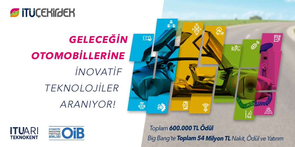 Geleceğin otomotiv teknolojilerin peşinden koşan girişimler, İTÜ ARI Teknokent ve OİB desteğiyle İTÜ Çekirdek girişimcisi olmak için www.itucekirdek.com/otomotiv adresinden başvurularını gerçekleştirebilir.