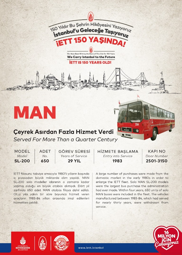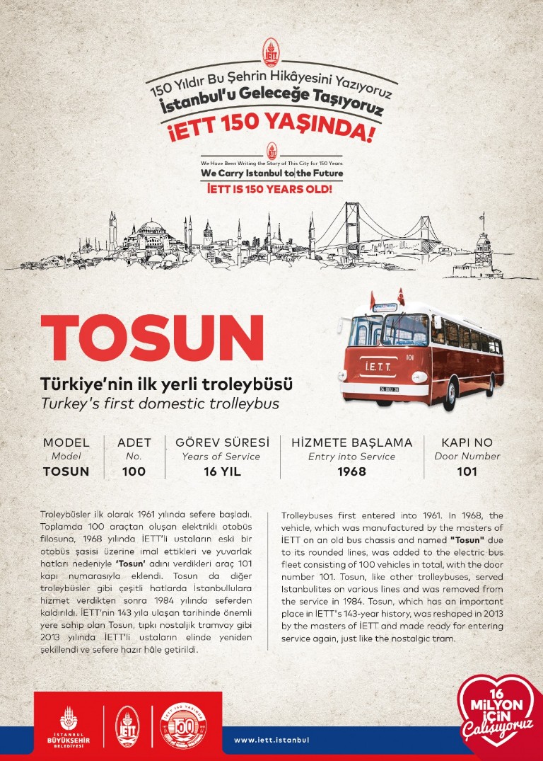 Atlı tramvayların hizmete başladığı 1871 yılında kurulduğu kabul edilen İETT 150 yaşında. Geçmiş yıllarda gaz ve elektrik dağıtımı görevlerini de üstlenen işletme, bugün kent içinde 6 bin 250 araçla yolcu taşıma hizmeti veriyor.