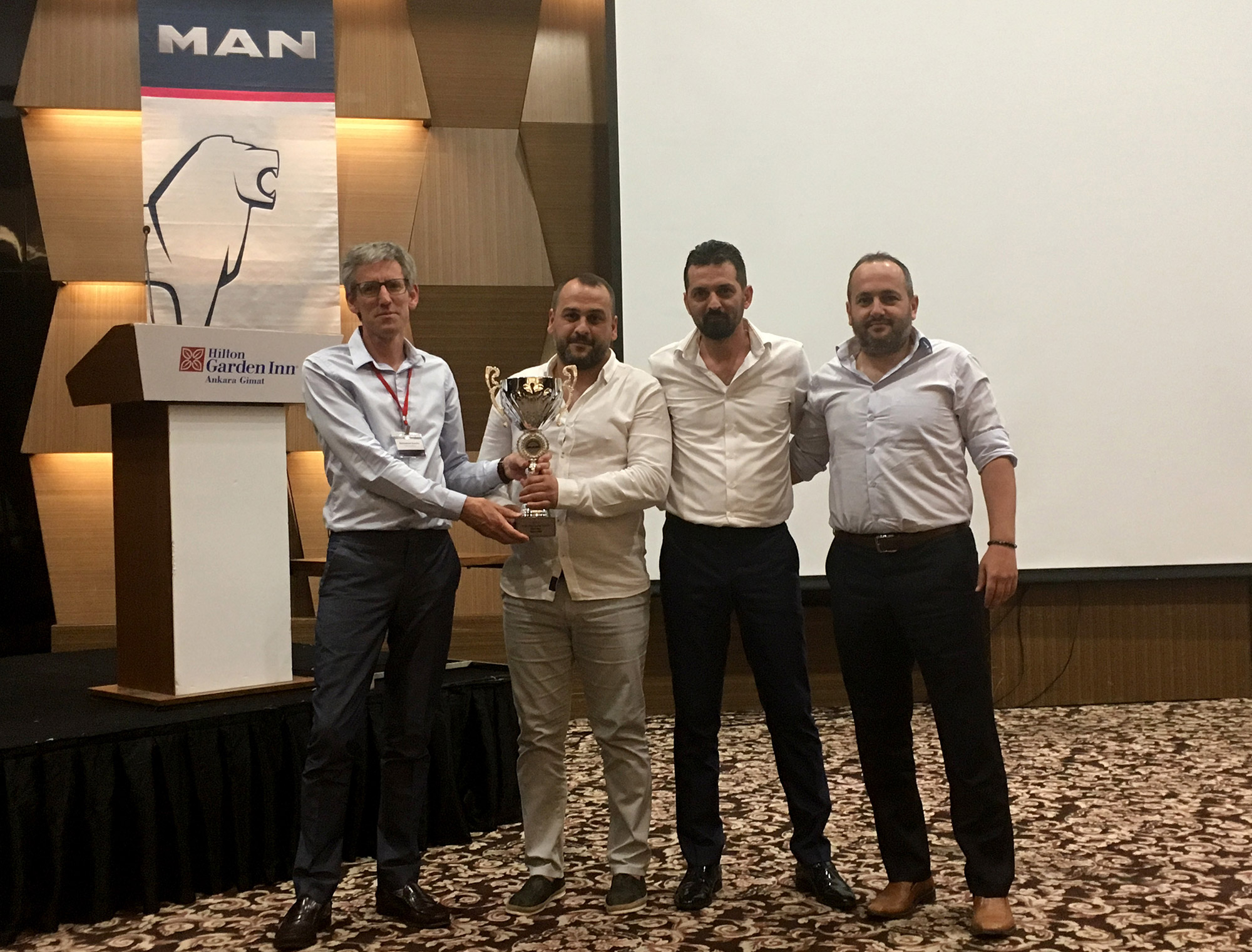 MAN Yetkili Servisleri’nin bu buluşmasında, Müşteri Memnuniyeti ve MAN Servis Değerlendirme Sistemi’nde ilk üç sırayı alan yetkili servisler de ödüllerini aldılar. Bu dönem B Tipi Yetkili Servisler kategorisi birincisi Mapar Otomotiv İzmir Şubesi, C Tipi Yetkili Servisler kategorisinde ise ilk sıra Ay-Man Otomotiv oldu. Müşteri memnuniyeti anketinde ise birinciliği Bakiler MAN aldı.