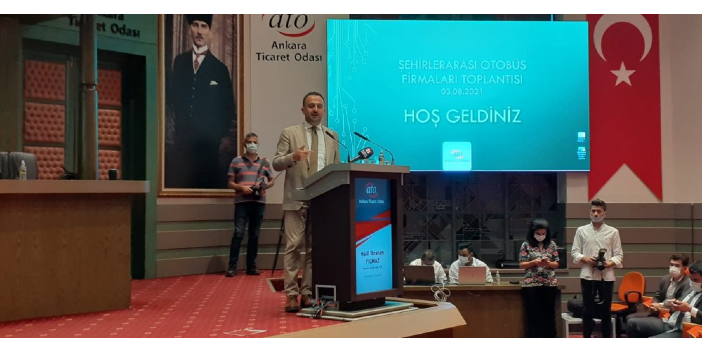 Ankara Ticaret Odası toplantı salonunda, Türkiye'nin dört bir yanından katılan 60 otobüs firması temsilcisiyle sektöre dair bir toplantı gerçekleştirildi. Toplantıda ATO Başkan Yardımcısı ve AKK Başkanı Halil İbrahim Yılmaz, sektördeki problemlere ve neler yapılması gerektiğine değindi.