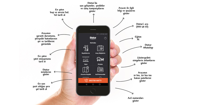 Kullanıcılar Otokar’ın uygulaması sayesinde bundan böyle araç garanti başlangıç bitiş tarihlerini, periyodik bakımlarını, yer ve zamanlamaları takip edip; bulunduğu bölgeye en yakın bayi ve servisleri görüntüleyip, yol tarifi alabilecek. Dahası, aracın ömrünü ve verimliliğini uzatan düzenli bakım paketleri içeriklerini uygulamadan görüntüleyebilecek. Otokar ve ürünleri hakkında güncel bilgilerin, kampanyaların görüntülenebildiği uygulama üzerinde acil durumlar için tek tıkla ulaşılabilen “Acil Numaralar” bölümü de yer alıyor. Otokar Destek Hattı ve Otokar WhatsApp Hattı’na erişim imkanı da sunan uygulama, araç gösterge panelinde yer alan simgeleri de dile getiriyor. “Gösterge Paneli” bölümünü kullanan araç sahipleri, kullandığı araca özel simgeleri detaylıca ne işe yaradığını öğrenebiliyor.