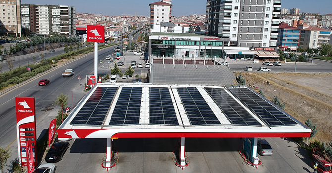 Petrol Ofisi’nin 2019 yılında Muğla Bodrum’da Paşalılar Petrol (42,075 kWp) ile başladığı güneş enerjili istasyon projesine, daha sonra sırasıyla İzmir Çiğli’de Yaman Petrol (44,28 kWp), Torbalı’da As Mira Petrol (42,24 kWp), Antalya Alanya’da Ali Şahin Petrol (70,62 kWp) ve son olarak da Ankara’da Kadem Petrol (59,40 kWp) eklendi. Proje dahilindeki Petrol Ofisi istasyonları elektrik ihtiyaçlarının tamamına yakınının güneş enerjisinden karşılamalarının yanı sıra ürettikleri fazla enerjiyi de şebekeye veriyorlar.