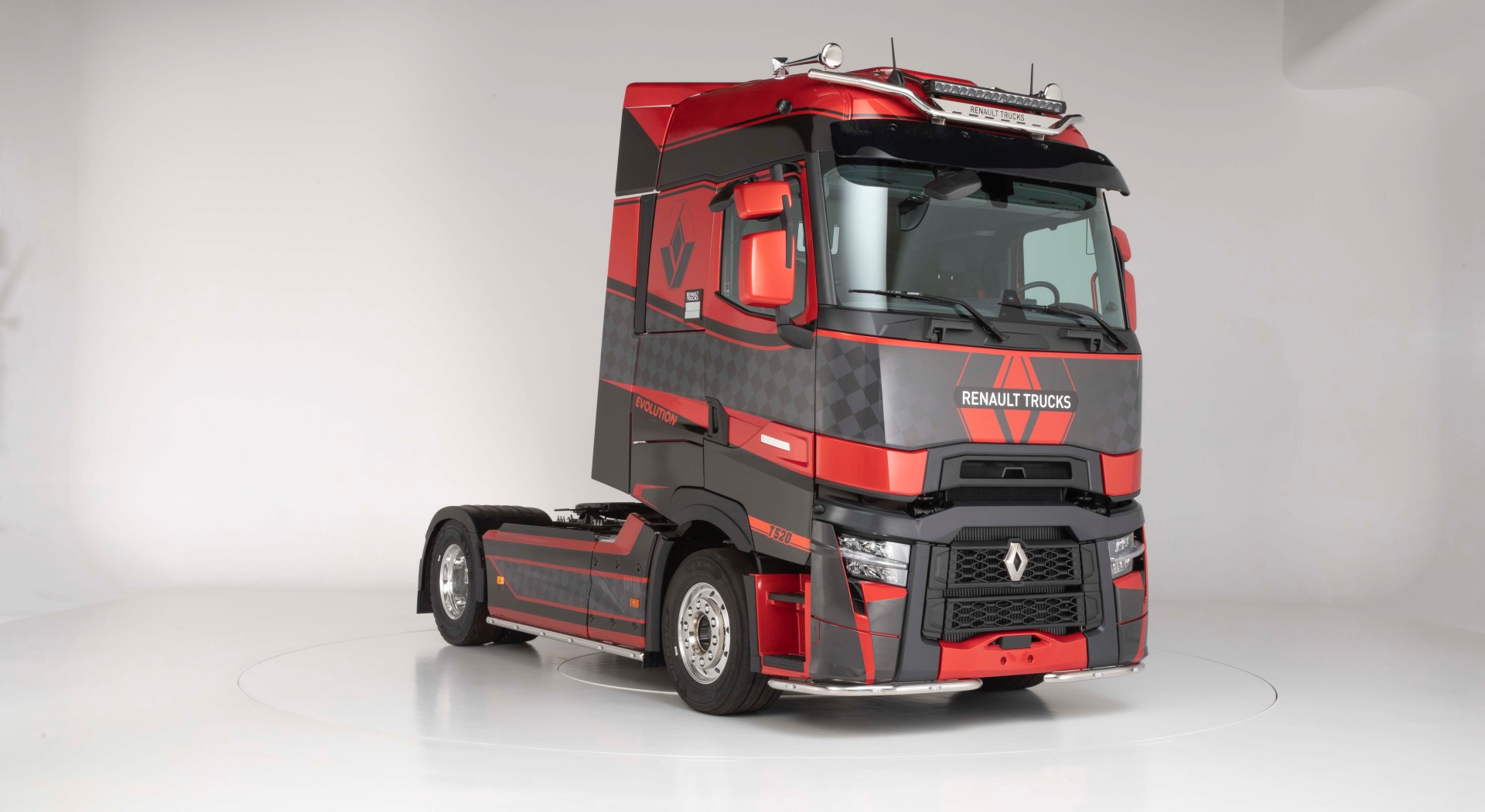 Ralli arabalarından esinlenilen damalı bir desen, kabini çevreliyor ve Renault Trucks logosu kamyonun ön kısmını tamamlıyor. Yanlardaki siyah çizgiler hız etkisi katarak "Renault Trucks Diamond Evolution" olarak adlandırılan bu araca ince bir görünüm kazandırıyor.