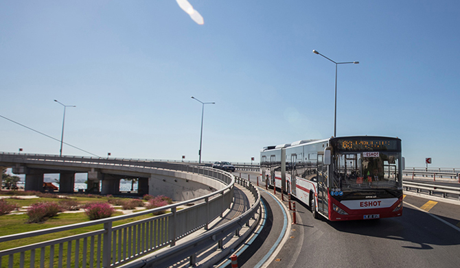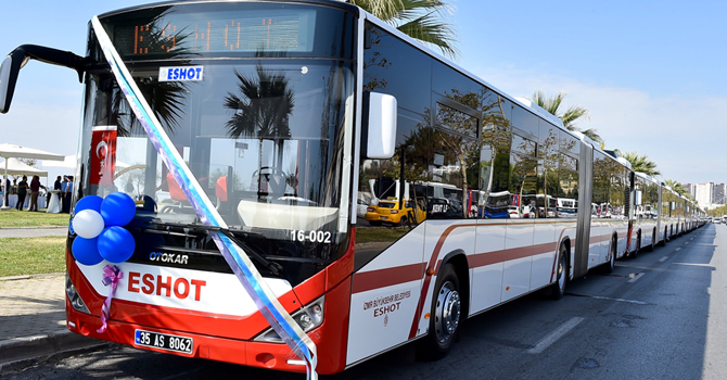 Başkan Kocaoğlu, otobüs filosunun her geçen gün büyüdüğünü belirterek, "Gelinen nokta itibariyle ESHOT Genel Müdürlüğü 1502 araç kapasitesi ve 4150 personeli ile toplu taşımacılık hizmeti veriyor. ESHOT Genel Müdürlüğü ile birlikte ortak hizmet yürüten İZULAŞ şirketimiz de, aynı anlayış doğrultusunda 344 otobüs ve 1024 personeli ile çalışmalarını sürdürüyor" diye konuştu.