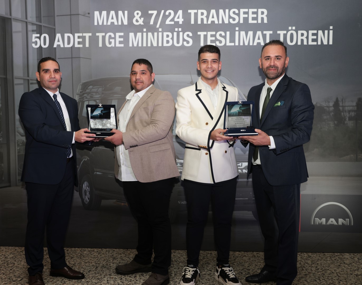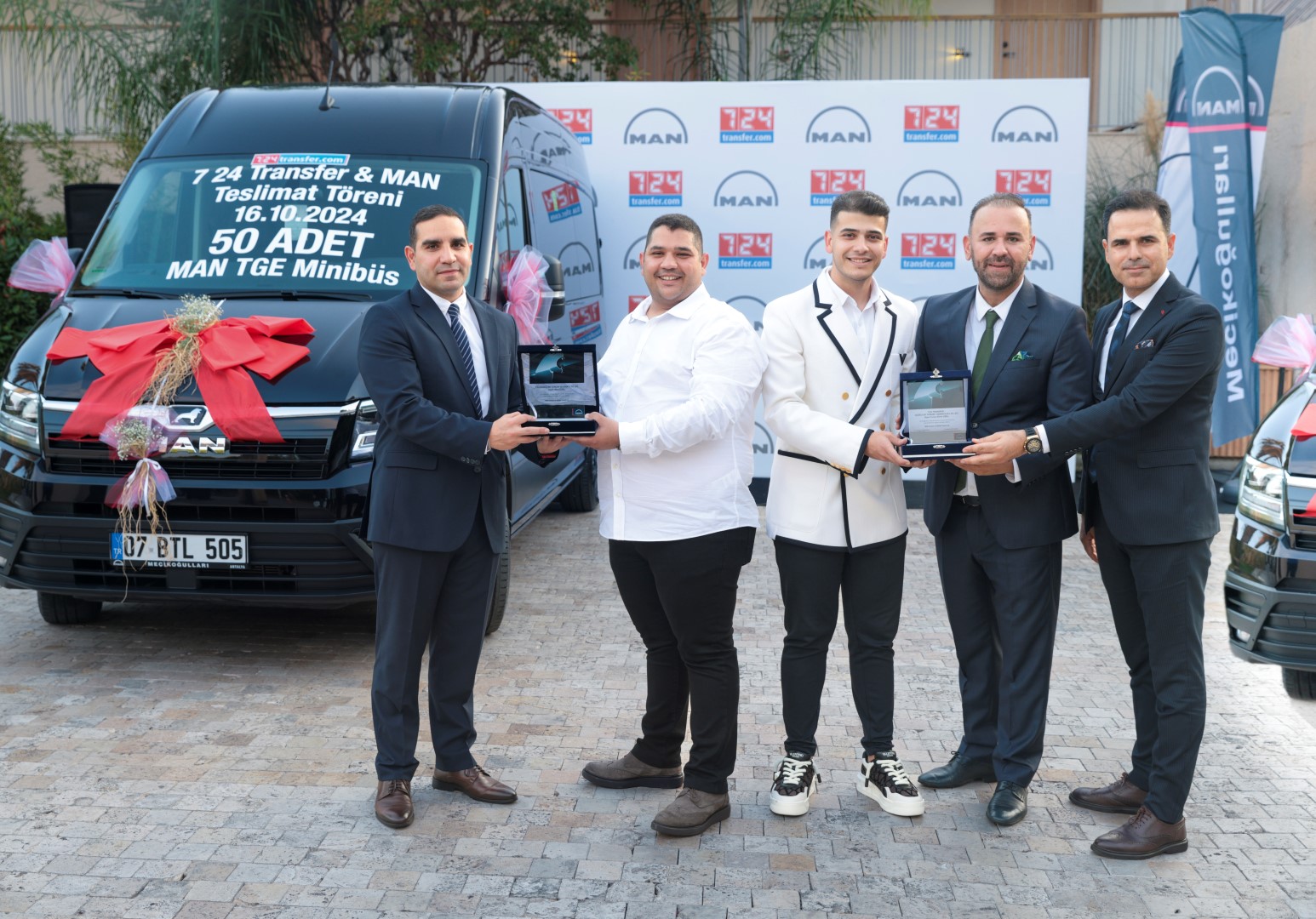 Alanya’da düzenlenen teslimat törenine 724 Transfer şirketinin Yönetim Kurulu Başkanı ve aynı zamanda Yönetim Kurulu Üyesi Yunus Emre Uzel, şirket ortakları Hilmi Uzel ve Serkan Günaydın ile MAN Kamyon ve Otobüs Ticaret A.Ş. adına Hafif Ticari Araçlar (HTA) ve İkinci El Satış Direktörü Cumhur Kutlubay, HTA Bayi Koordinatörü Gökhan Bakubala ile Meçikoğulları Otomotiv Satış Müdürü Levent Kaplan katıldı.