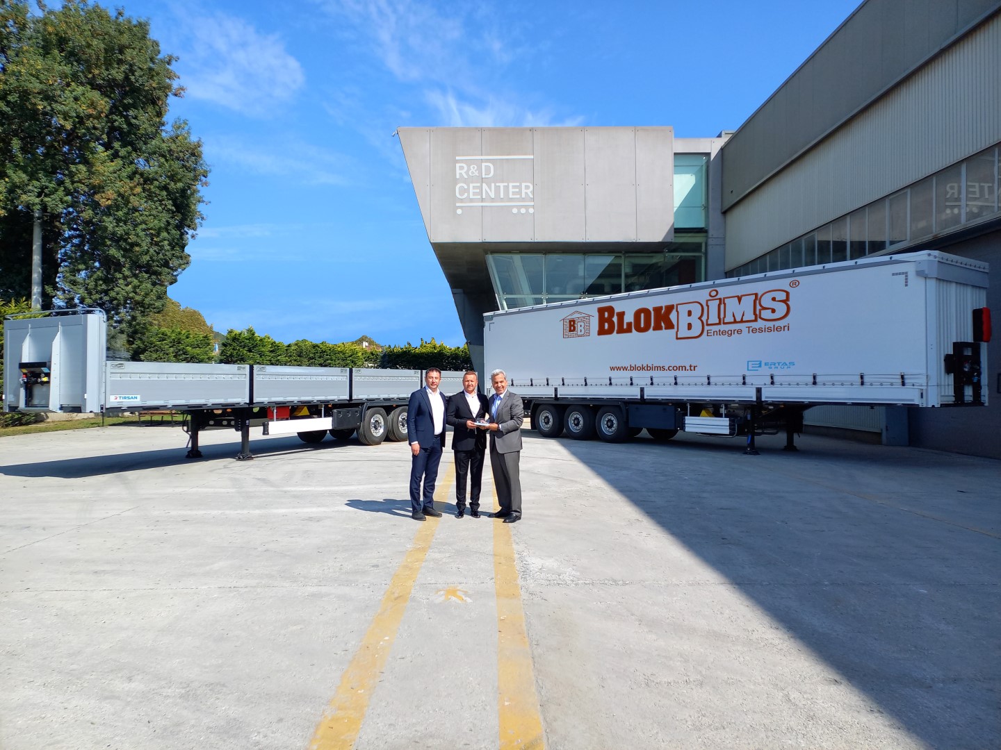 Tırsan, Adapazarı fabrikasında gerçekleştirdiği teslimat törenlerine son hız devam ediyor. Son olarak Blokbims firmasına yapılan teslimat törenine; Tırsan Treyler Yönetim Kurulu Başkanı Çetin Nuhoğlu, Blokbims Yönetim Kurulu Başkanı Ahmet Ertaş ve Tırsan Treyler Satış Yöneticisi Özgür Ayçiçek katılım gösterdi.