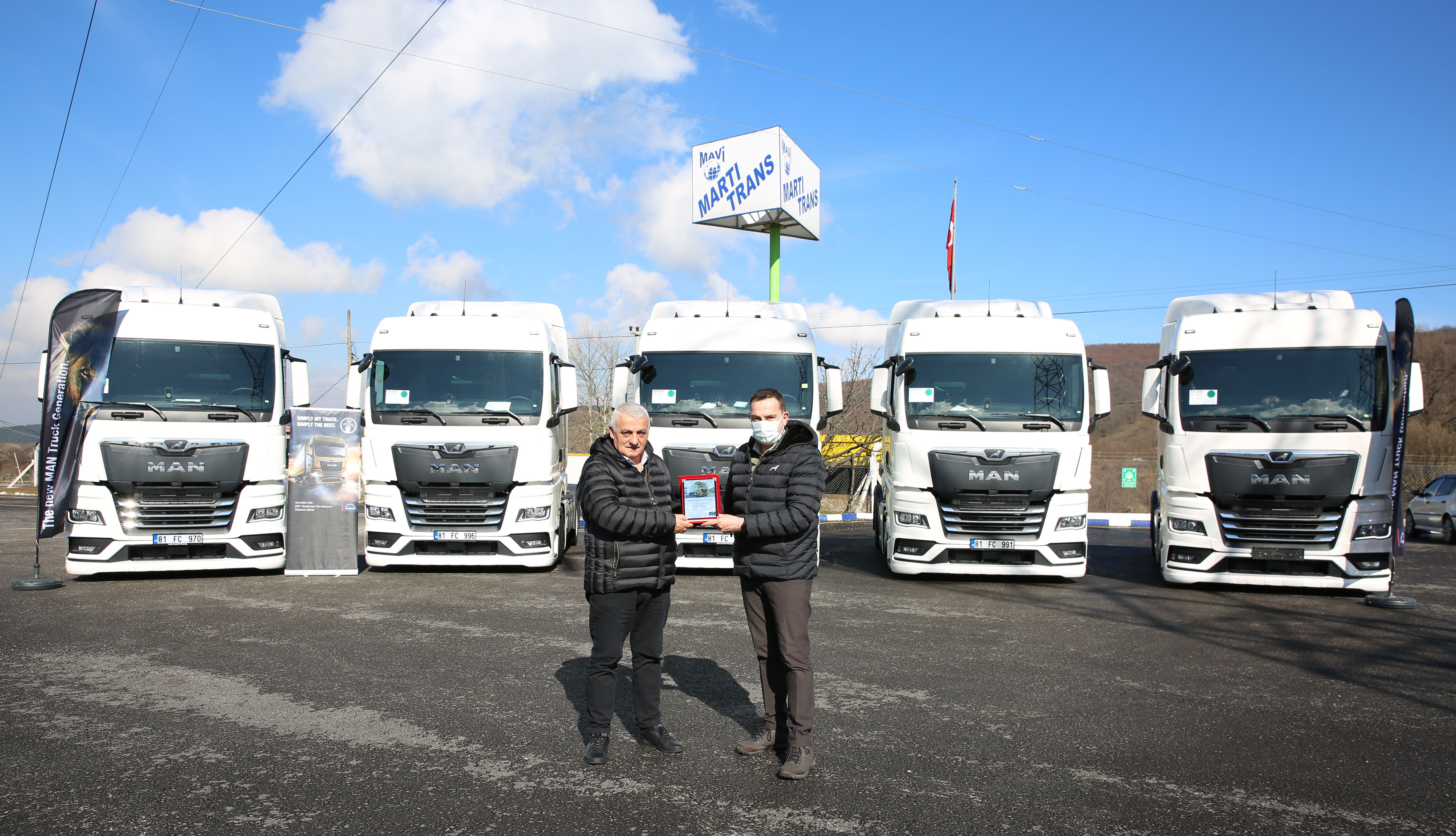Bölgedeki ikinci teslimat ise Mavi Martı Lojistik’te, firma sahipleri Fethi Çapar ve Uğur Çapar’ın katılımlarıyla gerçekleştirildi. Törende 5 adet TGX 18.470 4x2 LL SA U çekici firmaya teslim edildi.
