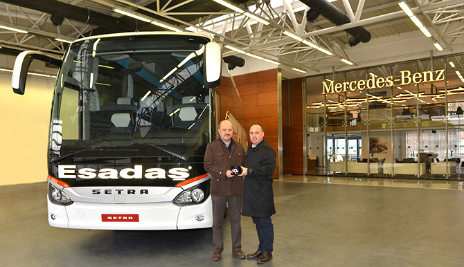 Esadaş Turizm Yönetim Kurulu Başkanı Haluk Şenpolat tören sırasında yaptığı konuşmada “Firmamızın araç parkı tamamen Mercedes-Benz marka otobüslerden oluşuyor. Araç filomuzu her sene olduğu gibi bu sene de gençleştiriyoruz. Setra’yı tercih etmemizin nedenleri, araç 13 metre olduğundan 2+1 için daha uygun, yakıt tüketiminin ekonomik ve uzun vadeli bir yatırım olması. İç tasarımı oldukça konforlu olan Setra ile yolcularımıza daha iyi ve müşteri memnuniyetini öne çıkaracak şekilde hizmet edeceğimizi düşünüyoruz. Mercedes-Benz Türk’e katkılarından dolayı teşekkür ediyoruz. Hayırlı ve uğurlu olsun.” dedi.