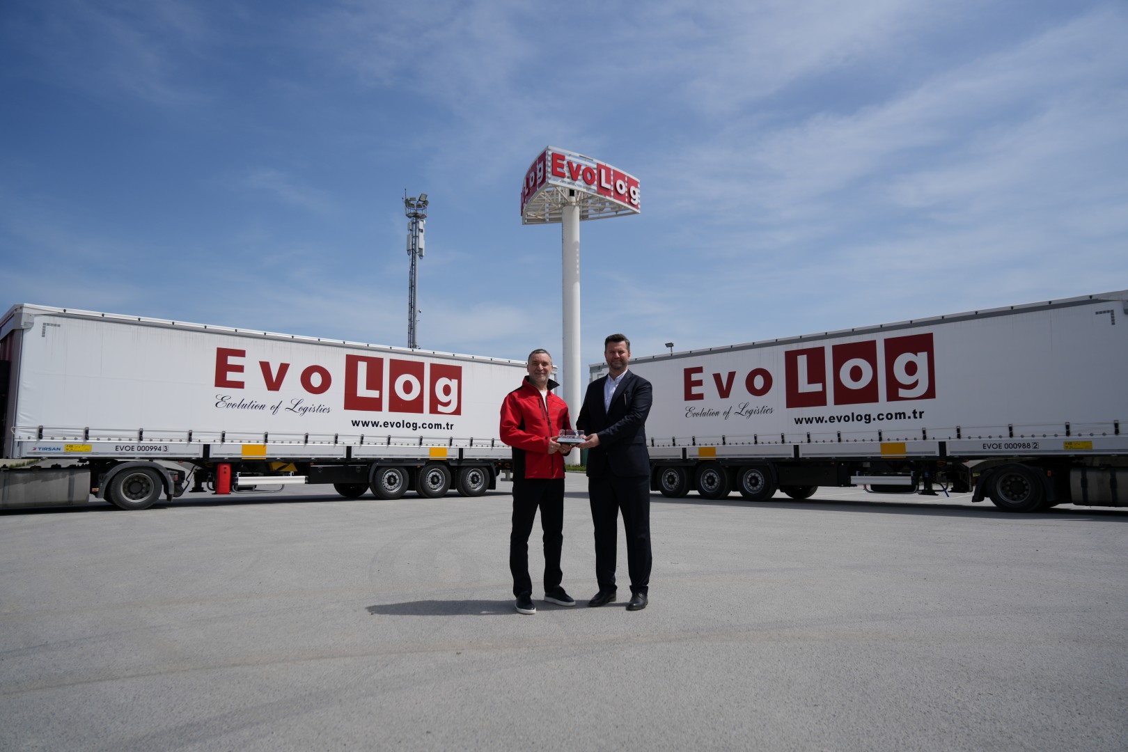 Türkiye'nin önde gelen lojistik firmalarından EvoLog Lojistik, 150 adetlik Tırsan Tenteli Perdeli Multi-Ride yatırımının ilk treylerlerini teslim aldı. Teslimatların tamamlanmasıyla birlikte EvoLog Lojistik filosundaki Tırsan sayısı 1200'e ulaşacak. 13 Nisan Pazartesi günü EvoLog'un Çatalca'daki lojistik merkezinde düzenlenen törene EvoLog Lojistik Yönetim Kurulu Başkanı Barış Talay, EvoLog Lojistik Genel Müdür Yardımcısı Birol Çalışkan ve Tırsan Treyler Satış İcra Kurulu Başkanı Ertuğrul Erkoç katıldı.