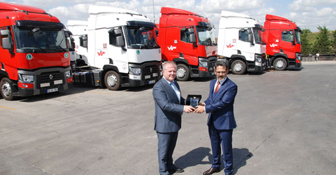 20 adet Euro 5 normunda Renault TrucksT460 çekici, VIP’in Hadımköy tesislerinde Renault Trucks yöneticilerinden Fatih Erdem tarafından VIP İşletme Müdürü Vedat Tutu’ya teslim edildi. Bu satış, Renault Trucks’ın son aylarda gerçekleştirdiği en yüksek adetli T gamı satışlarından biri oldu.