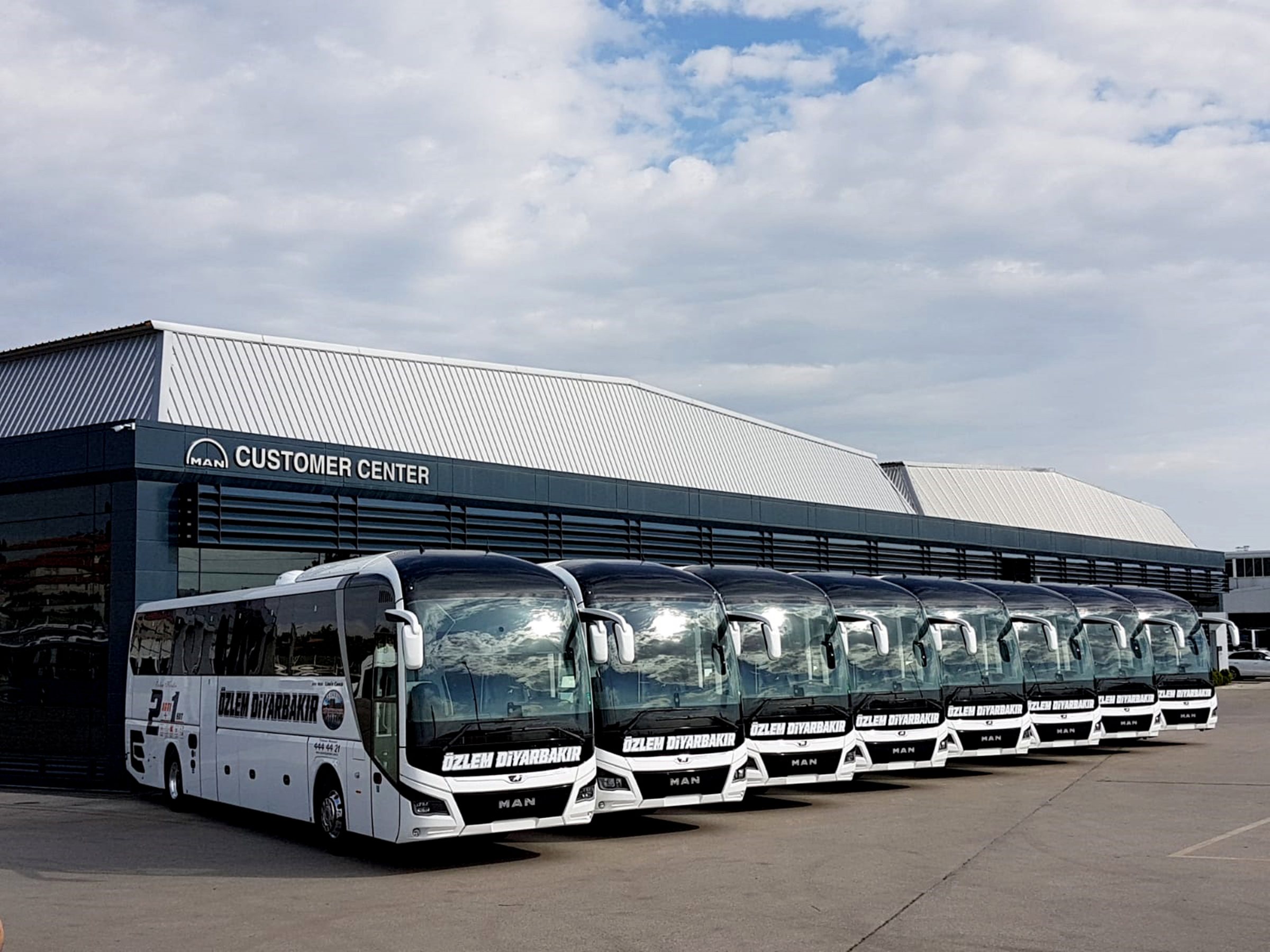 MAN’ın Ankara Akyurt’ta bulunan tesislerinde MAN Kamyon ve Otobüs Satış Direktörü Can Cansu ve Bölge Satış Yöneticisi Önsel Demircioğlu’nun ev sahipliğinde düzenlenen ilk törene Özlem Diyarbakır firması sahibi Hacı Selahattin Güneş de katıldı. MAN ile köklü bir işbirliği bulunan Özlem Diyarbakır, 2019 yılı sonuna kadar tamamlanacak olan 8 adetlik MAN Lion’s Coach 2 aks 13 metre 2+1 VIP ve 2+2 otobüs yatırımının ilk bölümü olan 3 adet MAN Lion’s Coach’u, Hacı Selahattin Güneş bizzat teslim aldı.