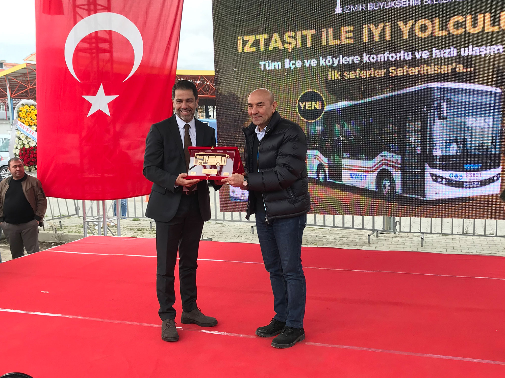 Anadolu Isuzu’nun ödüllü modeli Isuzu Novociti Life, İzmir Seferihisar halkına hizmet vermeye başladı. İzmir Büyükşehir Belediyesi’nin, kent merkezi dışındaki ilçelere toplu ulaşım olanaklarını artırma hedefiyle hayata geçirdiği İZTAŞIT projesi kapsamında 28 adet Novociti Life, 28 Aralık 2019 tarihinde Seferihisar’da düzenlenen törenle ESHOT’a teslim edildi. Törene İzmir Büyükşehir Belediye Başkanı Tunç Soyer, CHP İzmir Milletvekili Kani Beko, Seferihisar Belediye Başkanı İsmail Yetişkin, Bayraklı Belediye Başkanı Serdar Sandal, Güzelbahçe Belediye Başkanı Mustafa İnce, Menderes Belediye Başkanı Mustafa Kayalar, Anadolu Isuzu Satış Direktörü Yusuf Teoman, Anadolu Isuzu Satış Yöneticisi Murat Küçük’ ün yanı sıra İzmir genelindeki pek çok motorlu taşıyıcı kooperatifinin temsilcileri ile Seferihisar halkı da katıldı.