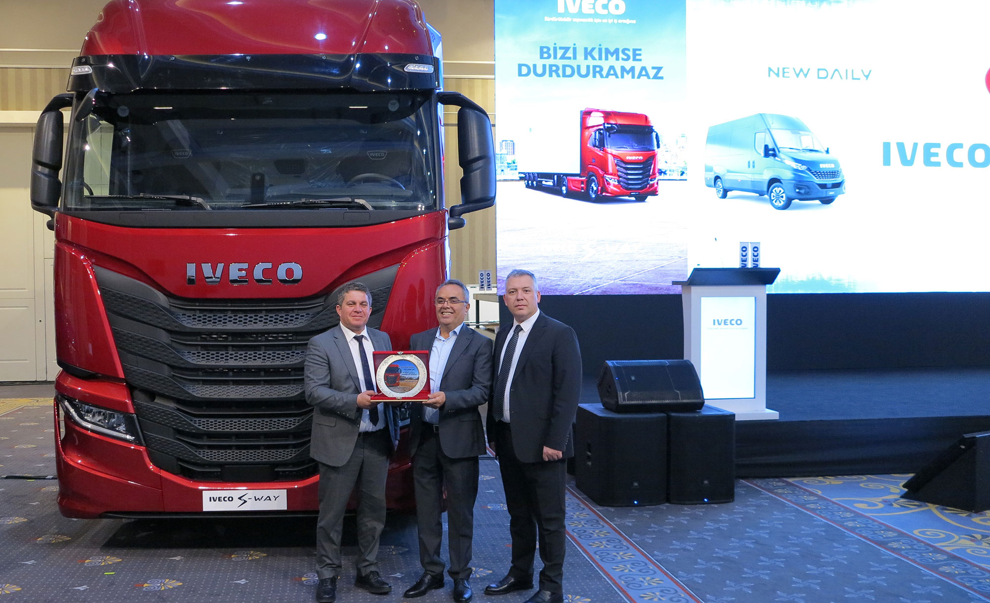 2004 yılında kurulan ve hem yurt içi hem de yurt dışı nakliyede çalışan Denizli merkezli Dnt firması ise 6 adet IVECO S-WAY AS440S48 TP çekici satın aldı. Plaket firma sahibi Önder Manisalı’ya IVECO Türkiye genel müdürü Hakkı Işınak tarafından teslim edilirken törende firma ortağı Abdurrahman Manisalı ve yöneticisi Kemal Dülger hazır bulundular. Dnt firmasında halihazırda 70 adet çekici bulunuyor.