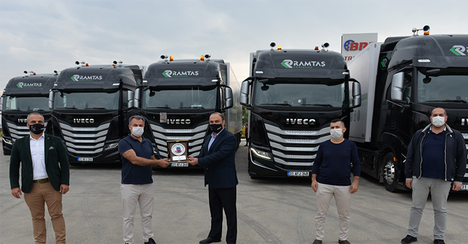 Özel metalik siyah renk, park kliması ve 510 BG motor ve özel donanım ile sipariş edilen araçlar Antakya’da sosyal mesafe kurallarına uyularak yapılan teslimat töreninde IVECO bölge satış müdürü Murat Aydoğan, Üstün İş Otomotiv yönetim kurulu başkanı Eyüp Zengin tarafından Ramtaş ortakları Sedat Ramazan ve Selahattin Ramazan’a teslim edilmiştir.