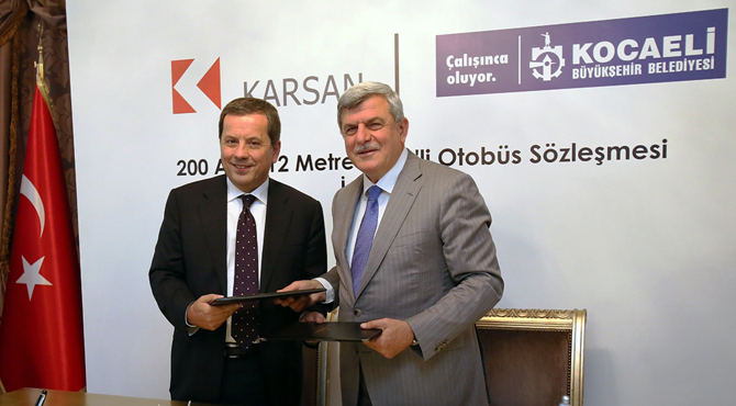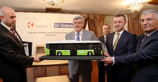 Kocaeli Büyükşehir Belediyesi Toplu Taşıma Dairesi Başkanlığı Otobüs İşletmesi Şube Müdürlüğü’nün 10 Şubat 2015 tarihinde yaptığı 200 adet sıkıştırılmış doğalgazlı(CNG) otobüs alımı ihalesi sonuçlandı. 4 firmanın katılımıyla yapılan ihale sonucunda 31.840.000 Euro bedelle ihaleyi kazanan firma Karsan Otomotiv Sanayi ve Ticaret A.Ş. oldu. Kocaeli Büyükşehir Belediye Başkanı İbrahim Karaosmanoğlu ile Karsan CEO’su Murat Selek tarafından 200 adet CNG’li otobüs alımı için protokol töreni düzenlendi.
