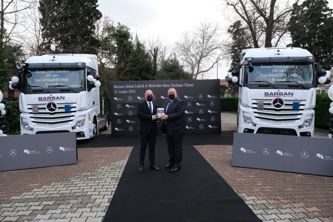 Mercedes-Benz Türk, 2010 yılından bu yana iş ortaklığı yaptığı Barsan Global Lojistik firmasına gerçekleştirdiği filo teslimatlarına 2021 yılında bir yenisini daha ekledi. Aksaray Kamyon Fabrikası’nda üretilen 320 adet Actros 1848 LSnrL aracının tamamını “tam paket servis sözleşmeli” olarak satın alan Barsan Global Lojistik, yeni araçlarını uluslararası nakliye alanında kullanacak.