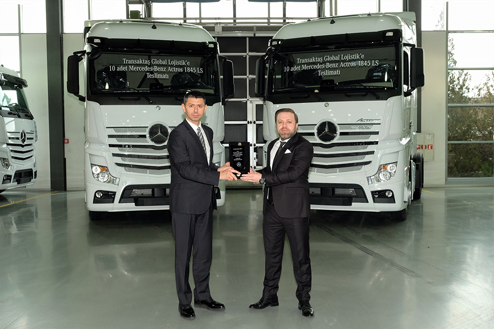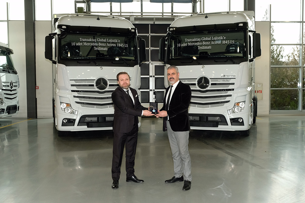 Mercedes-Benz Türk; 1996 yılında kurulan ve başta Avrupa ve Orta Doğu olmak üzere uluslararası nakliye alanında hizmet veren Mersin merkezli Transaktaş Global Lojistik yetkilileriyle, 10 adet Actros 1845 LS retarderli aracın teslimatını gerçekleştirmek üzere Aksaray Kamyon Fabrikası bünyesinde bulunan Müşteri Merkezi’nde düzenlediği törende bir araya geldi. Tamamı Aksaray Kamyon Fabrikası üretimi olan Actros araçların teslimatı sebebiyle gerçekleştirilen törene Mercedes-Benz Türk Kamyon Filo Satış Grup Müdürü Haluk Burçin Akı, Mercedes-Benz Türk Yetkili Bayii Koluman Motorlu Araçlar Tarsus Kamyon Satış Müdürü Yasin Tasasız ve Transaktaş Global Lojistik Yönetim Kurulu Başkanı Ahmet Aktaş katıldılar. Mercedes-Benz Türk ile iş ortaklığına 2016 yılında 1 adetlik araç alımı ile başlayan Transaktaş Global Lojistik, Mercedes-Benz yıldızı taşıyan 10 adet yeni aracını uluslararası frigo taşımacılığında kullanmayı planlıyor.