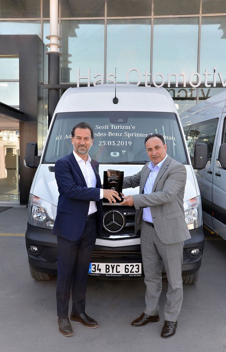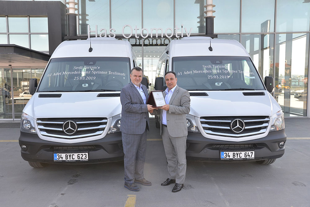 İstanbul merkezli ve faaliyetli olmanın yanı sıra, Adana, Ankara, Antalya, Bursa ve İzmir bölgesinde öğrenci ve personel taşımacılığı alanlarında hizmet veren Sesli Turizm, tercihini bir kez daha Mercedes-Benz Sprinter araçlardan yana kullandı. Sesli Turizm, Ocak ayında Ofses Turizm olarak gerçekleştirmiş olduğu 20 adetlik Sprinter teslimatının ardından Mercedes-Benz Türk Yetkili Bayii Has Otomotiv tarafından gerçekleşen yeni satışla birlikte filosunu 2019 model 16+1 Mercedes-Benz Sprinter araçlar ile güçlendirdi.