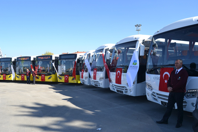 Balıkesir Büyükşehir Belediyesi’nin 2015 yılında başladığı dönüşüm ve değişim çalışmalarının Türkiye’de dikkatle takip edildiğini ve ornek alındığını belirten Başkan Uğur şöyle konuştu: “Gerek esnafımız, gerek Büyükşehir Belediyesi’nin şirketi, gerek Ulaşım Dairemiz araçları ile çığ gibi büyümekte. Bugün itibarı ile 224 adedi Büyükşehir Belediyesi, 25 adedi BTT AŞ öz malı ve 609 adet BTT AŞ bünyesinde çalışan esnafımıza ait olmak üzere toplam 858 taşıtlık dev bir filo ile Balıkesirli hemşehrilerimize hizmet veriyoruz. Bu araçlar günde 150 bin yolcu taşıyor. aylık 4 milyon üzerinde yolcu taşıma kapasitemiz var. Büyükşehir Belediyesi olarak 20 milyon lira, şirketimiz 5 milyon lira, esnafımız da 80 milyon liralık yatırım yaptı. Toplam 105 milyon liralık yatırım var. Bu 858 aracımıza 24 araç daha ilave ediyoruz. Gaziosmanpaşa ve 52 Evler hatlarındaki 24 minibüs kapsamında klimalı, engelli uyumlu, güvenlik kameralı ve validatörlü araç almak için kararını aldı. Balıkesir’e hayırlı uğurlu olsun. Kampüs araçlarını yeniledik, taksi dolmuşları yeniledik. Yalnızca Balıkesir merkezdeki değil, Ayvalık’ta, Burhaniye’de, Gönen’de, Manyas’ta, Edremit’te bütün ilçelerimizde bu modern araçlarımızı hızlı bir şekilde hemşehrilerimizin hizmetine sunuyoruz.” Başkan Uğur sözlerini otobüsleri yenileme konusunda şoför esnafının Büyükşehir Belediyesine örnek olduğunu söyleyerek tamamladı.