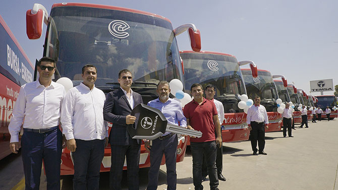 Mersin Travel filosuna katılan yeni 10 adet 2+1 Safir Plus araçlar için TEMSA’nın Adana Fabrikası’nda 26 Temmuz Pazartesi günü bir tören düzenlendi. Törene E.Ç Holding Yönetim Kurulu Başkanı Erdal Çetin, TEMSA Satış Direktörü Murat Anıl ve Bölge Satış Yöneticisi Fırat Bakır katıldı. 10 adet 2+1 Safir otobüslerin Mersin Travel filosunda hizmet vereceğini belirten E.Ç Holding Yönetim Kurulu Başkanı Erdal Çetin, “Bu yatırımla birlikte grup bünyesindeki filolarda hizmet veren TEMSA marka araç sayısı 25’e çıkmış oldu. TEMSA Safir otobüslerin işletme sürecindeki sağladığı avantajlar benim yatırım tercihimde en önemli etkenlerden biri oldu. Maliyetlerin arttığı bir dönemde sizin giderlerinizi aşağıya çekebilecek yatırım araçlarına ihtiyacınız var. TEMSA Safir araçlar bu ihtiyaca cevap veriyor. Ayrıca TEMSA’nın satış sonrasındaki kaliteli hizmet süreci ve TEMSA yöneticilerinin, satış ekibinin bize gösterdikleri yakın ilgi ve destek te yeni yatırım kararında etkili oldu” dedi.