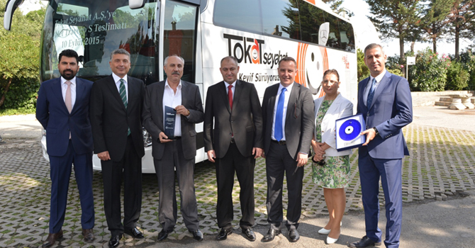 Mercedes-Benz Türk Pazarlama ve Satış Direktörü Süer Sülün tören sırasında yaptığı konuşmada şunları ifade etti: “Tokat Seyahat ile aramızda uzun yıllara dayalı güçlü bir iş ortaklığı var. Bu ortaklık bizi geçtiğimiz yıllarda olduğu gibi bu yılda yeniden bir araya getirdi. Kendilerini, 29 araçlık Mercedes-Benz Travego Special Edition kapsamındaki özel donanımlı araçlarımızı tercih ettikleri için kutluyor, bol kazançlar diliyorum.”