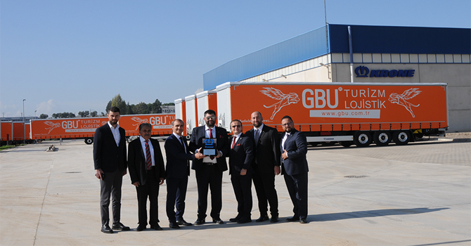 Krone’nin Tire fabrikasında gerçekleştirilen teslimat törenine Krone Türkiye CEO’su Rıza Akgün, Krone Türkiye Satış Müdürü Ömürden Özacar, Krone’nin Bölge Satış Yöneticisi Kerim Ocik ve GBU Turizm Lojistik Firma Sahipleri Gürol Başar Ülger ve Adem Ülger katıldılar. GBU Lojistik yetkililerine Krone’nin göz bebeği olan Tire fabrikasının da gezdirildiği tören sonunda Krone Türkiye CEO’su Rıza Akgün firma yetkililerine bir plaket takdim etti.