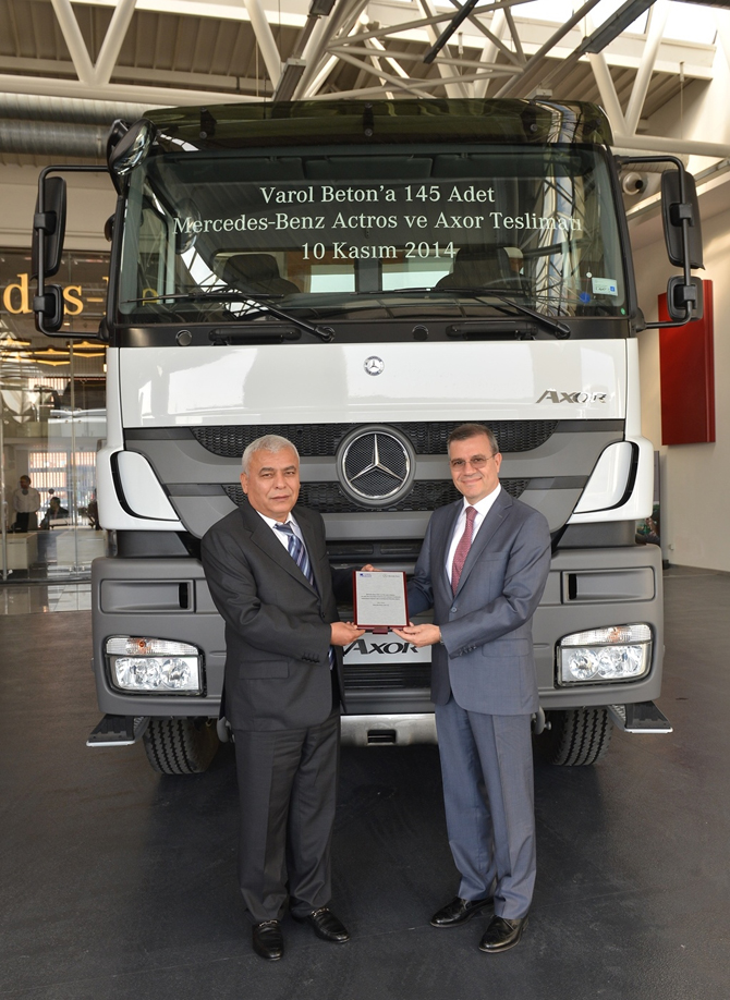 Başta hazır beton olmak üzere inşaat taahhüt, akaryakıt, demir ticareti, inşaat malzemeleri ve tarım ürünleri ticareti gibi birçok farklı alanda faaliyet gösteren Varol Beton, Mercedes-Benz ile işbirliğine devam ediyor. Varol Beton, Mercedes-Benz Türk yetkili bayii Hasmer Otomotiv aracılığı ile yapılan satışla 66 adet Axor 1840 LS, 10 adet Actros 1844 LS, 4 adet Axor 3340 K, 63 adet Axor 4140 B, 1 adet Axor 1829 K ve 1 adet Axor 3229 C olmak üzere toplamda 145 adet aracı hazır beton işlerinde ve hazır beton hammaddelerinin taşımacılığında kullanmak üzere törenle teslim aldı. Teslim edilen araçlarla birlikte bugün Varol Beton’un filosunda 193 adet Mercedes-Benz marka araç bulunuyor.