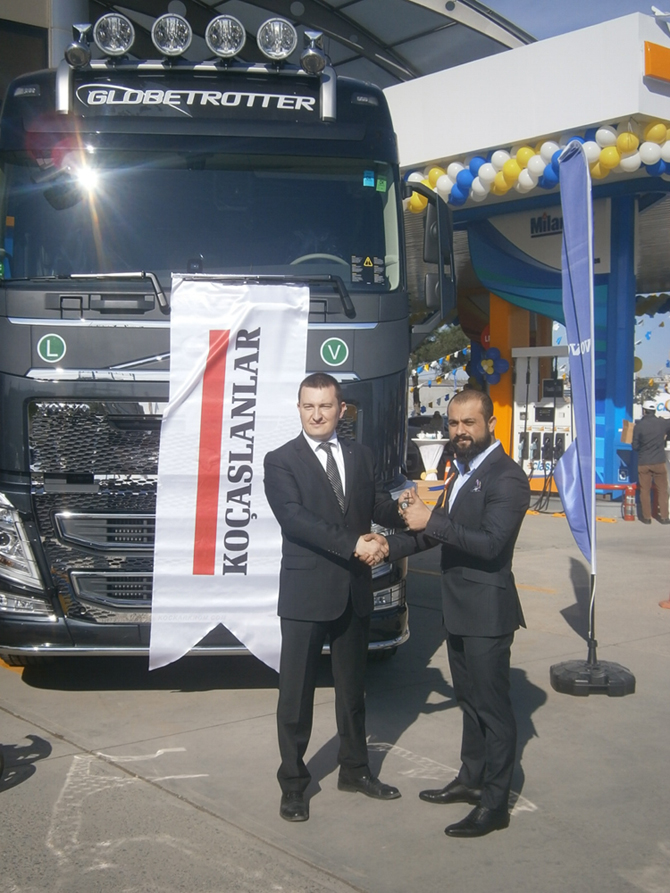 Teslimat töreninde Volvo Trucks Bölge Satış Müdürü İbrahim Karabulut hazır bulunurken, Güner Petrol A.Ş adına ise Selahattin Uslu yer aldı.