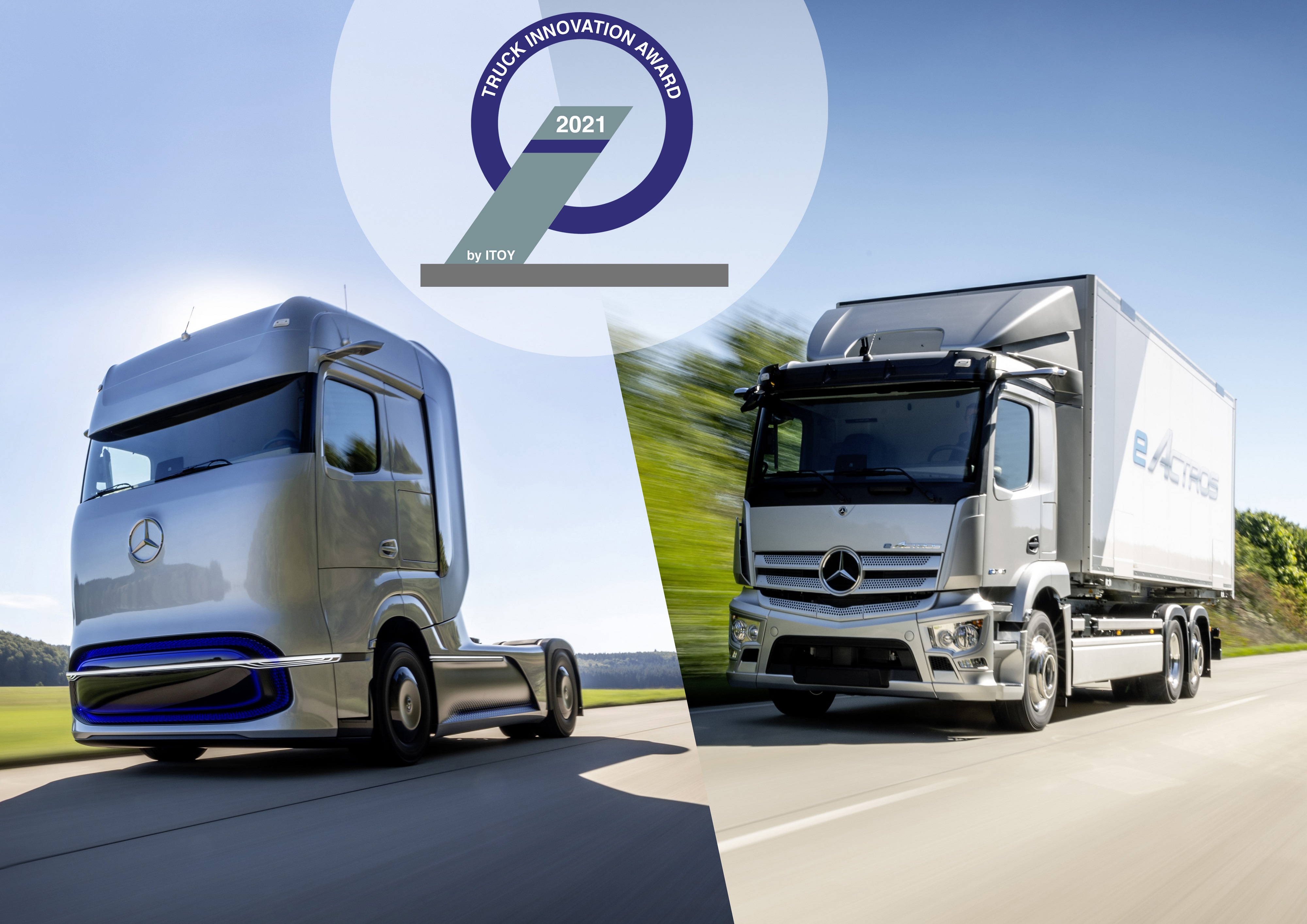 International Truck of the Year (IToY – Uluslararası Yılın Kamyonu) jürisinin verdiği karara göre, elektrikli geleceğin en yenilikçi kamyonları Mercedes-Benz yıldızı taşıyor. Jüri, prestijli 2021 Kamyon İnovasyon Ödülü’nü Mercedes-Benz’in iki elektrikli kamyonu olan batarya elektrikli Mercedes-Benz eActros’a ve yakıt hücreli konsept araç Mercedes-Benz GenH2 Kamyon’a verdi. Avrupa ve Güney Afrika’nın önde gelen kamyon dergilerini temsil eden 25 ticari araç editörü ve kıdemli gazeteciden oluşan IToY jürisi, özellikle açıkça ifade edilmiş uzun vadeli bir stratejiye dayanan e-mobilite hakkındaki kapsamlı yaklaşıma dikkat çekti. Ödül, Daimler Truck AG Yönetim Kurulu Başkanı ve Daimler AG Yönetim Kurulu Üyesi Martin Daum ve Daimler Truck AG’nin Geliştirme, Satın Alma ve Çin Bölgesi’nden Sorumlu Yönetim Kurulu Üyesi Sven Ennerst’e 30 Kasım 2020’de dijital ortamda verildi.