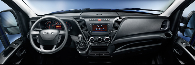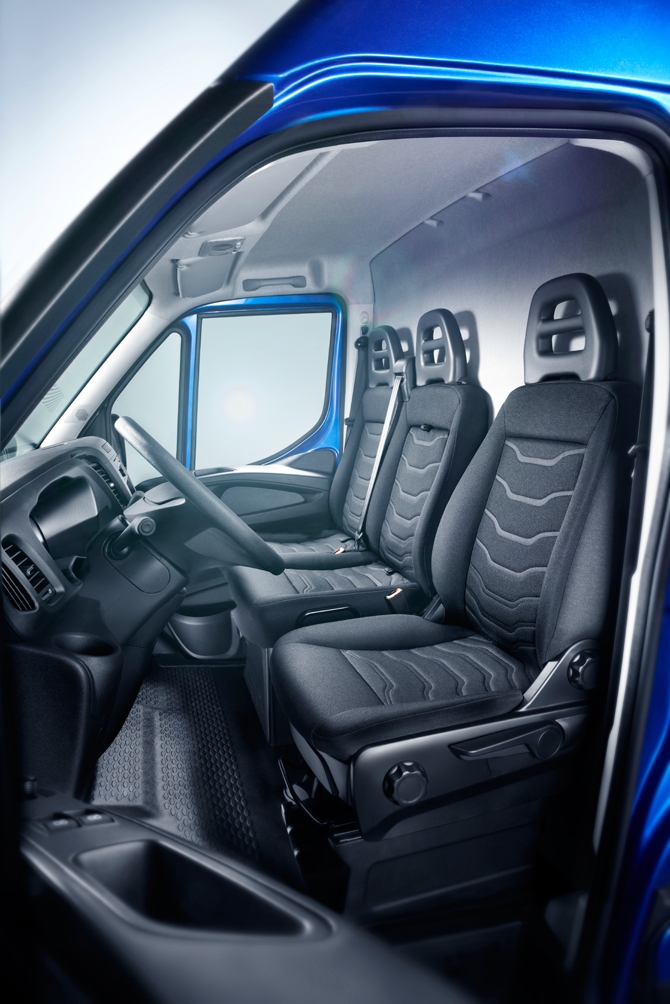 Kabinin tasarımı da sürücü ve yanındakilere daha iyi bir ortam sunmak için tamamen yenileniyor ve artan açık alan görüş açısını artırıyor. Yeni Daily’de ergonomi ve ses yalıtımı üst düzeyde. Ergonomiyi geliştirmek üzere tamamen yenilenen kontrol paneli, koltuklar ve direksiyon sürücünün üst düzey bir otomobildeki gibi bir sürüş pozisyonu almasını ve hissetmesini sağlıyor. Spesifik olarak tüm kontrol ve saklama alanları sürüş sırasında rahatlıkla erişilebilir olma fikri ile tasarlanıyor. Bu alanlar beş kapalı torpido gözünü, üç bardak tutucuyu ve telefon, tablet gibi günlük kullanım için açık saklama alanlarını kapsıyor.