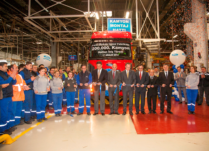 Ford Otosan, Ford Trucks kamyon ve çekicilerini ürettiği Eskişehir İnönü Fabrikası’nda 200 bininci kamyonu törenle hattan indirdi. Törene, Metal İş Sendikası Eskişehir Şube Başkanı Erkut Kılıç, Ford Otosan Genel Müdürü Haydar Yenigün,Ford Otosan Genel Müdür Başyardımcısı William Periam, Ford Otosan Kamyon İş Birimi Genel Müdür Yardımcısı Ahmet Kınay, Ford Otosan Malzeme Planlama ve Lojistikten Sorumlu Genel Müdür Yardımcısı Cengiz Kabatepe, Ford Otosan Kocaeli Fabrikalar Müdürü Mehmet Günel, Ford Otosan İnönü Fabrikası Müdürü Gültekin Hanlıoğlu ve kamyonları tasarlayan mühendisler ile üreten işçiler katıldı.