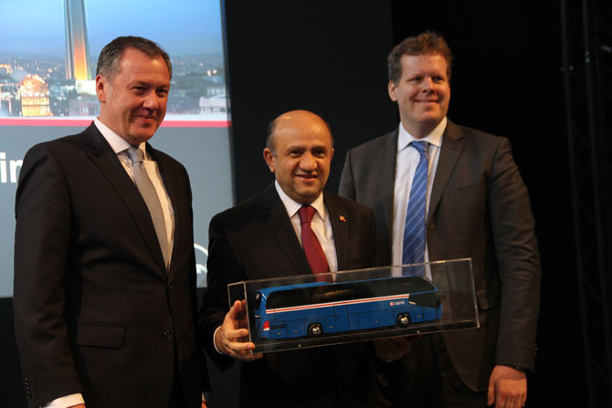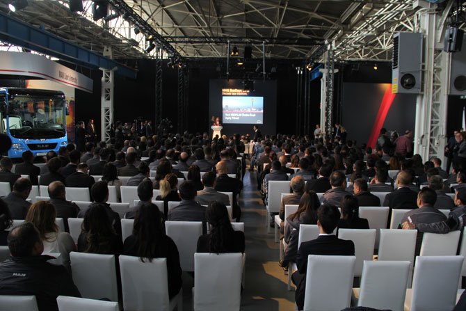 MAN Truck & Bus Yönetim Kurulu Üyesi Dr. Carsten Intra, “Daha önce benim de 6 ay yöneticiliğini yaptığım MAN Türkiye, son yıllarda yaptığı yatırımlar, geliştirmeler ile kalite ve verimliliğini arttırarak, tüm MAN camiası için örnek bir tesis haline gelmiştir. Markamızın gözbebeği ve prestiji olan premium ürünlerimiz CITYLINER, JETLINER ile amiral gemimiz olacak olan yeni tasarım SKYLINER otobüslerinin MAN Türkiye’de üretilecek olması, geleceğe daha güvenli bakmamızı sağlıyor“ dedi. MAN Türkiye ile ilgili planlarının yalnızca otobüs üretimi ile ve hatta yalnızca üretim ile sınırlı olmadığını da belirten Dr. Intra, “Türkiye’de devletin yaklaşımı ve Ar-Ge teşviklerinin de verdiği güçle, MAN Türkiye’yi bir Tasarım Merkezi haline getirmeyi planlıyoruz” açıklamasını yaptı.
