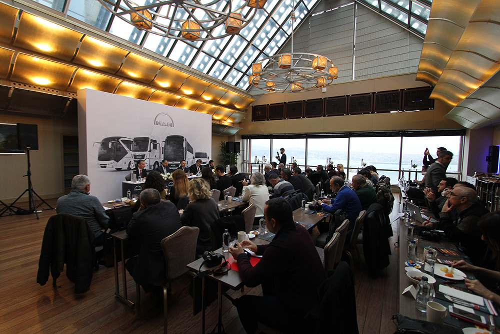 Türkiye pazarındaki yurt içinde satılan seyahat otobüslerinin tamamı 2 aks 13 metre ve 2+1 VIP koltuklarla satıldı. MAN Lion’s Coach ve aynı tarihte Türkiye pazarına sunulan NEOPLAN Tourliner’ın 2 aks 13 metrelik versiyonları, seçkin firmaların öncelikle tercihleri oldu. Türkiye kamyon pazarında Ekim sonu itibari ile %11 ile çift haneli pazar payına ulaşan MAN, ithal kamyon pazarındaki geleneksel liderliğini de sürdürdü. MAN TopUsed, daralan 2. el piyasasında uluslararası pazarlarla işbirliğini geliştirerek müşterilerine destek olmaya devam ediyor. 2018 yılında yapmış olduğu otobüs satışlarının %60’ını, kamyon/çekici satışlarının ise %35’ini yurt dışına satma başarısını gösteren MAN TopUsed 2018 yılını toplam 600 satış rakamı ile kapatacak. Rekabetçi yaklaşımı ve başarılı çalışmaları ile Satış Sonrası Hizmetler alanında da fark yaratan MAN’ın Türkiye’de geliştirdiği Servis Yönetim Sistemi Management Information System for After Sales – MI4A ise diğer ülke operasyonlarından da yoğun ilgi görüyor. MAN ürün yelpazesine ‘hafif’ dokunuş: TGE… 250 yılı aşan köklü geçmişi ile Dünyanın üretim ve mühendislik devinin kalite ve teknolojisini yeni bir segmente taşıyan yeni hafif ticari aracı MAN TGE, Türkiye’de ilk kez görücüye çıktı. Üstün nitelikli araçlarıyla 3 ile 44 ton teknik kapasite aralığındaki geniş ürün gamına sahip MAN, TGE modellerinin de katılımı ile, her türlü yük taşımacılığına hizmet verecek kapasiteye ulaştı. MAN Kamyon ve Otobüs Ticaret A.Ş.’nin Yılsonu Değerlendirme Toplantısı, bu yıl 19 Aralık 2018 tarihinde, The Ritz-Carlton Oteli’nde düzenlendi. MAN Kamyon ve Otobüs Ticaret A.Ş. adına Otobüs Satış Direktörü Can Cansu, Kamyon Satış Direktörü Serkan Sara, İkinci El Satış Direktörü Aydın Yumrukçal, Satış Sonrası Hizmetler Direktörü Şinasi Ekincioğlu ile Hafif Araç Satış Müdürü Cumhur Kutlubay’ın katıldığı geleneksel toplantı, bu yıl önemli bir gelişmeye de ev sahipliği yaptı. Otobüs, kamyon & çekici, ikinci el ve satış sonrası hizmetler alanında şirket ve sektöre yönelik 2018 gelişmeleri, 2019 öngörülerinin paylaşıldığı toplantıda, MAN kalite ve güvencesini yeni bir segmente taşıyan hafif ticari araç TGE serisinin ilk tanıtımı da yapıldı.