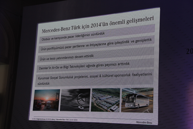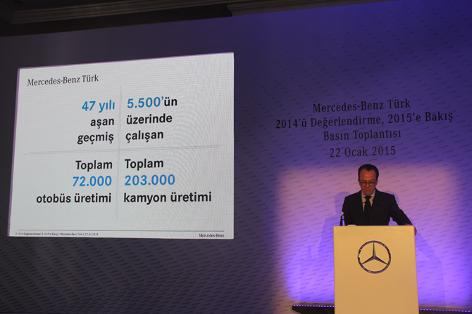Mercedes-Benz Türk Direktörler Kurulu Başkanı Rainer Genes, 2014 yılının değerlendirilmesi ile ilgili olarak düzenlenen basın toplantısında şunları söyledi: “Mercedes-Benz Türk olarak yaptığımız yatırımlar, üretim, ihracat ve yarattığımız istihdam ile Türkiye ekonomisine katkıda bulunuyoruz. Ayrıca kalifiye mühendis ve uzmanlarımız ile ana şirketimiz Daimler’in Ar&Ge ve IT üssü konumuna geldik. 2014 yılını satış hacmi açısından tarihi bir rekora imza atarak kapattık, 2015 yılında da tüm ürün gruplarımızda pazar konumumuzu güçlendirmeye ve hem ekonominin hem de sektörümüzün gelişimine katkı sağlamaya devam edeceğiz. ”